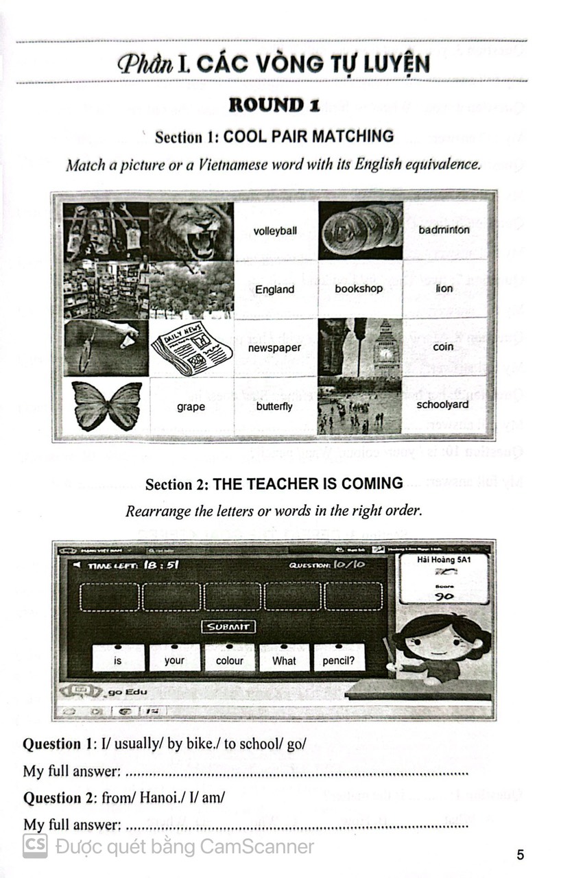 Cuốn sách gồm 35 vòng thi để giúp các em tự luyện tập, mỗi vòng được cấu tạo bởi các bài thi tương tự các vòng tự luyện trên mạng. Ngoài ra còn có 2 bộ đề để các em luyện thi các cấp, mỗi bộ đề cũng gồm 200 câu hỏi trắc nghiệm tương tự các vòng thi trên mạng. Khi giải các vòng thi cũng như các bộ đề, các em cần tự giải để tính thời gian và rút kinh nghiệm trước khi đến với các vòng thi trên mạng. Cuốn sách chỉ đưa ra các câu hỏi dạng đọc hiểu và chọn đáp án đúng, điền vào chỗ trống hay sắp xếp lại trật tự các từ trong câu, Các em cần luyện thêm phần nghe để đáp ứng đủ yêu cầu của mỗi vòng thi cũng như các bộ đề thi các cấp. Phần cuối cuốn sách là đáp án cho mỗi câu hỏi, các em sau khi giải sẽ đối chiếu với đáp án để tính điểm.