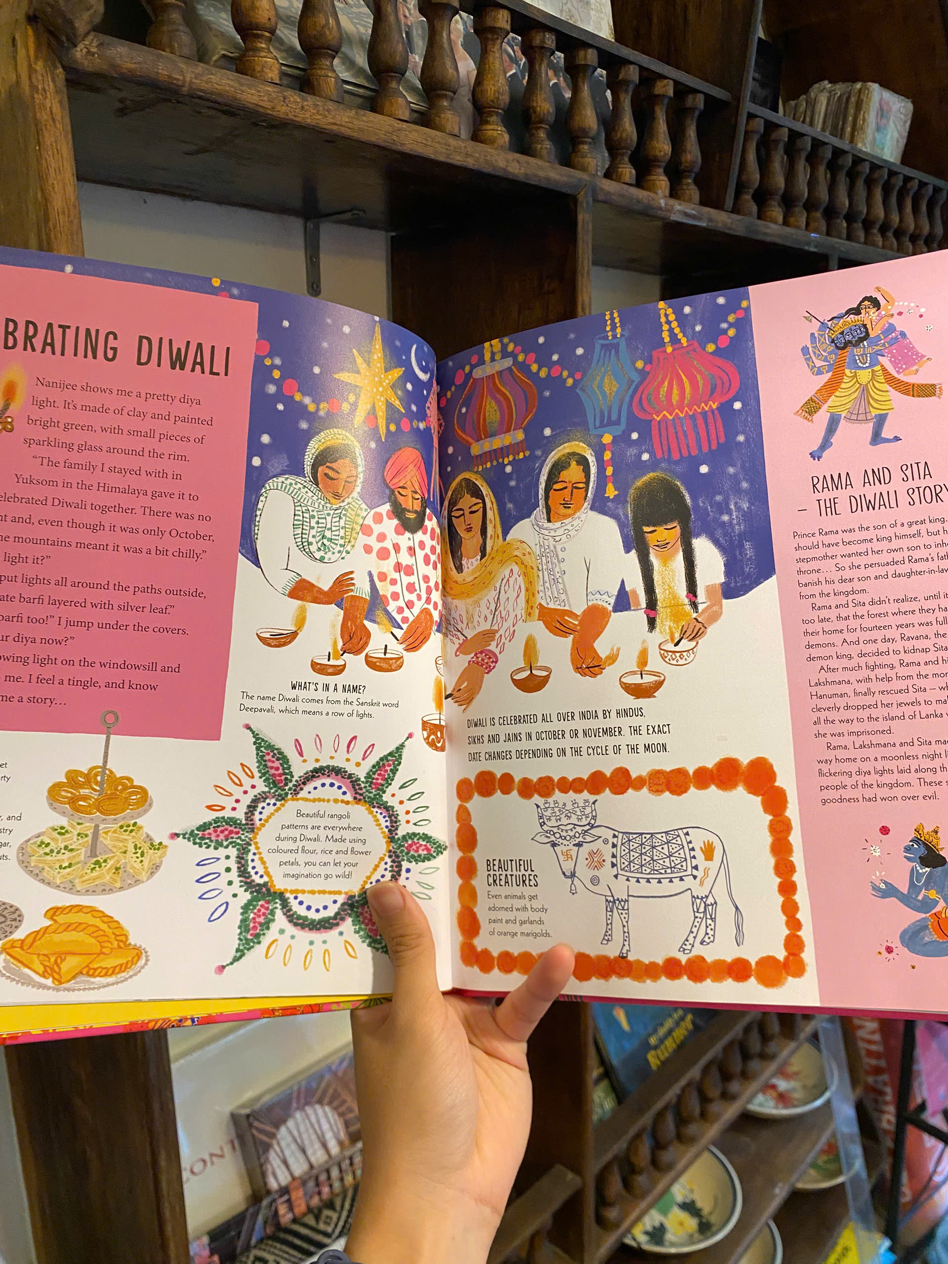 Journey through India and explore its incredible diversity in this richly illustrated book, with words from a Costa-winning author. Written by award-winning author Jasbinder Bilan with detailed artwork by Nina Chakrabarti, this is a joyful celebration of India and its incredible people, places and wildlife. Watch elephants bathing from a houseboat in Kerala, marvel at ancient cave paintings in Bhimbetka, wander through Delhi's bustling streets, and ride a train through the snow-capped peaks of the Himalaya. Uncover India's fascinating history and culture, and explore the unique mix of the traditional and modern that makes India the incredible country it is today.