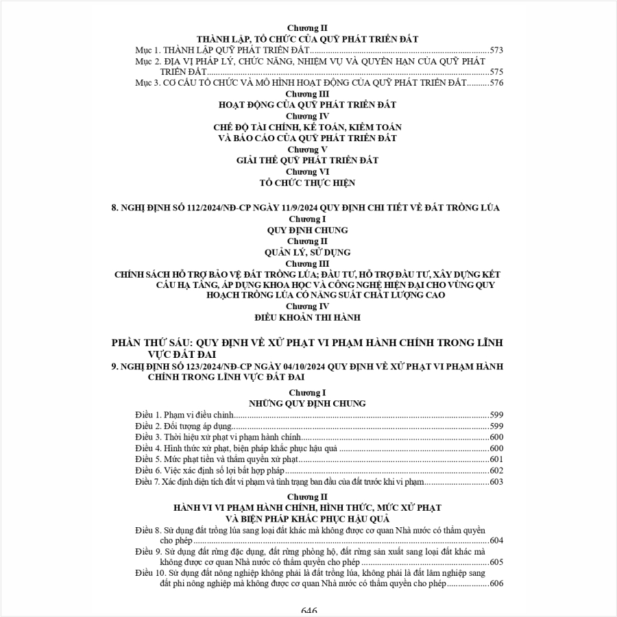 Ngày 18/01/2024, Quốc hội nước Cộng hòa xã hội chủ nghĩa Việt Nam thông qua Luật Đất đai số 31/2024/QH15, đã thể chế hóa đầy đủ, kịp thời các quan điểm, chủ trương của Đảng