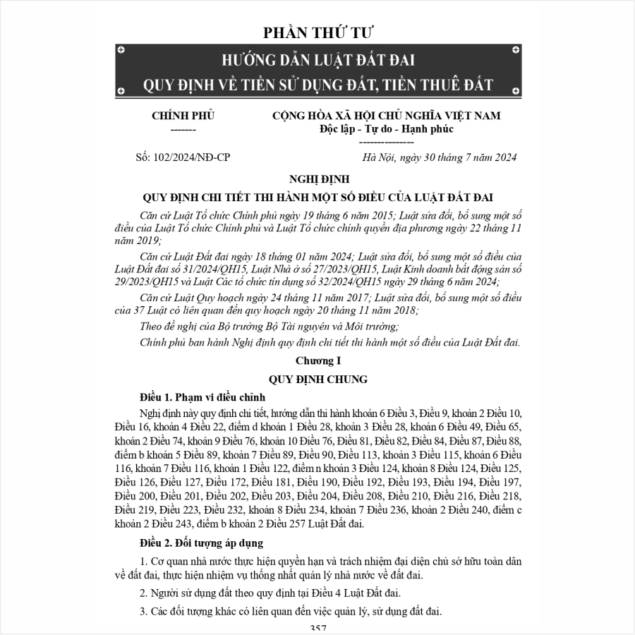 Luật Đất đai số 31/2024/QH15 được Quốc hội nước Cộng hòa xã hội chủ nghĩa Việt Nam khóa XV, kỳ họp bất thường lần thứ năm thông qua ngày 18 tháng 01 năm 2024,