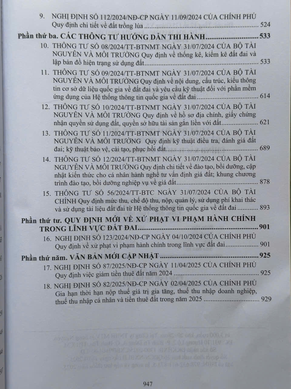 Sách Luật Đất đai (sửa đổi, bổ sung năm 2024) và các văn bản hướng dẫn thi hành