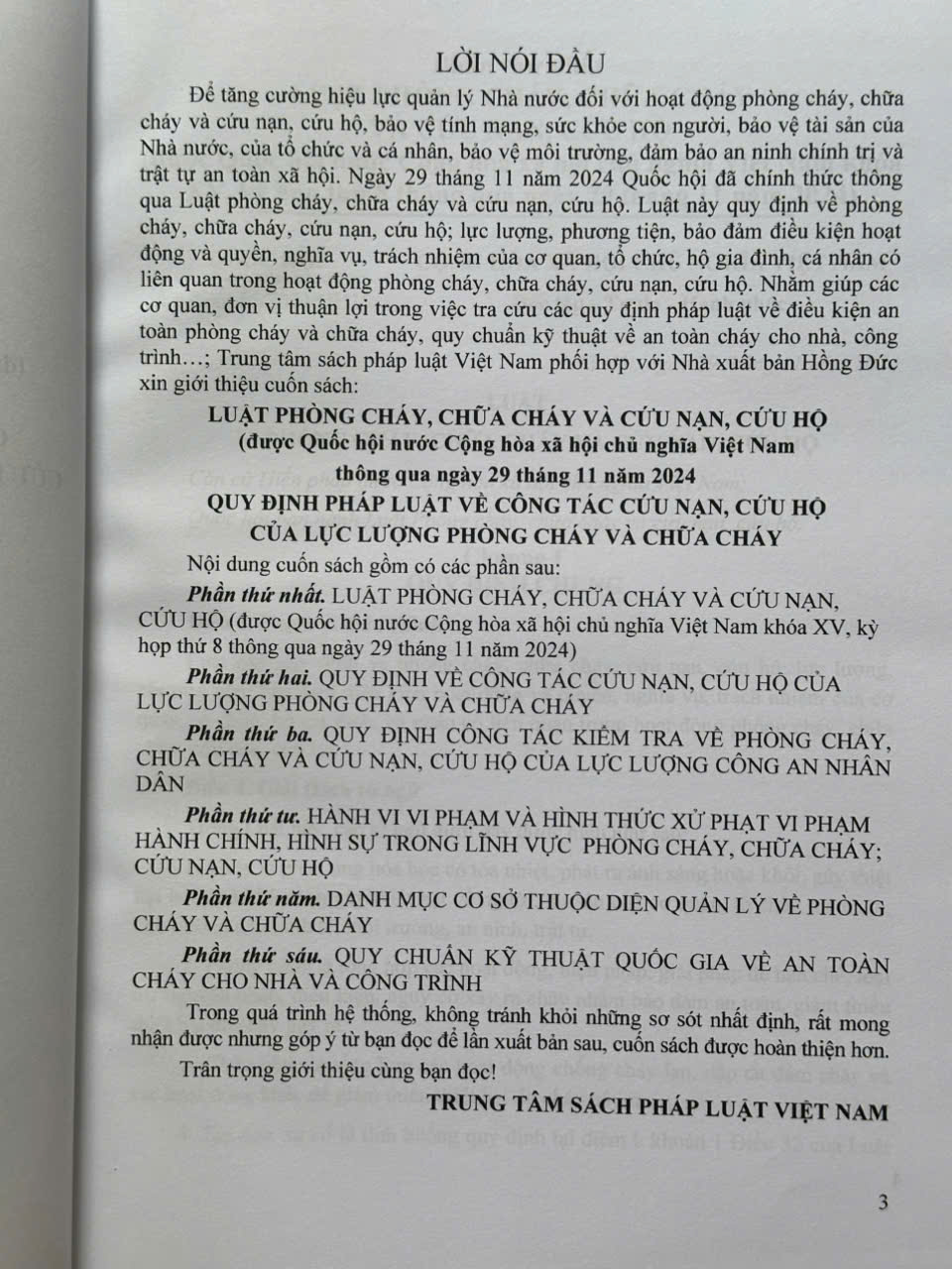 Nhằm giúp các cơ quan, đơn vị thuận lợi trong việc tra cứu các quy định pháp luật về điều kiện an toàn PCCC, quy chuẩn kỹ thuật về an toàn cháy cho nhà, công trình; các hành vi vi phạm và mức xử phạt vi phạm hành chính …; Nhà sách Nam Việt xin trân trọng giới thiệu cuốn sách: Phòng Cháy, Chữa Cháy Và Cứu Nạn, Cứu Hộ (được Quốc hội nước Cộng hòa xã hội chủ nghĩa Việt Nam thông qua ngày 29 tháng 11 năm 2024) – Quy Định Pháp Luật Về Công Tác Cứu Nạn, Cứu Hộ Của Lực Lượng Phòng Cháy Và Chữa Cháy