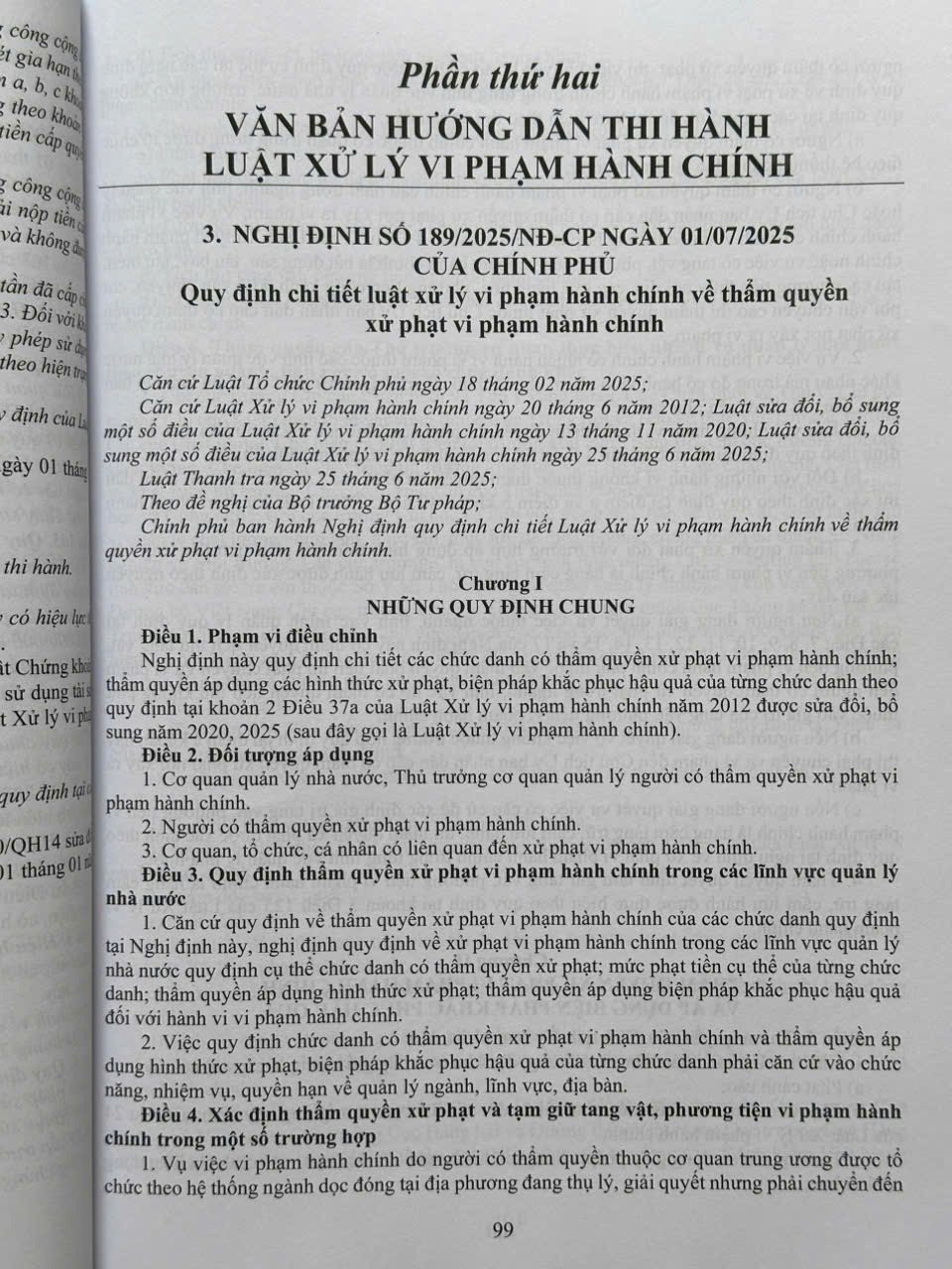 – Nghị định 189/2025/NĐ-CP ngày 01/07/2025 Quy định chi tiết Luật xử lý vi phạm hành chính về thẩm quyền xử phạt vi phạm hành chính,