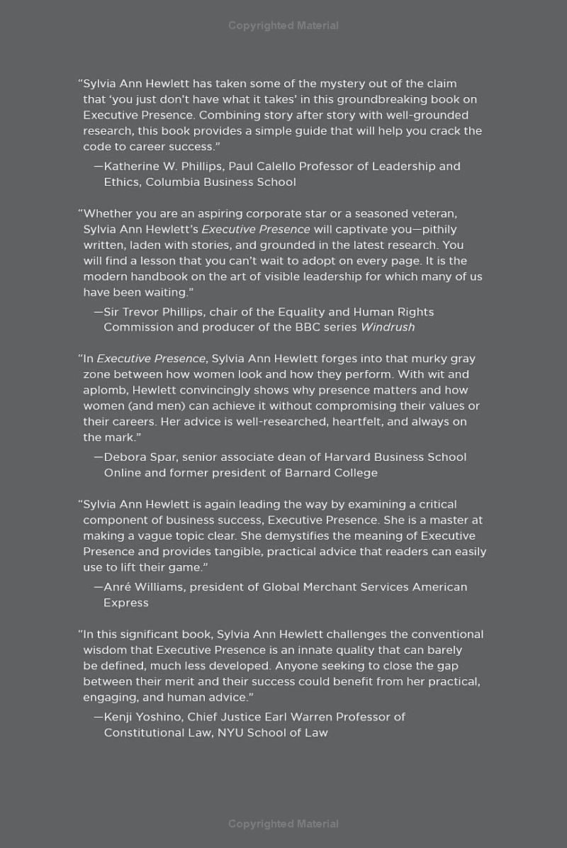 Executive Presence 2.0 In this updated and expanded edition of her celebrated book Executive Presence: The Missing Link Between Merit and Success, one of the world’s most influential business thinkers reveals the qualities essential to
