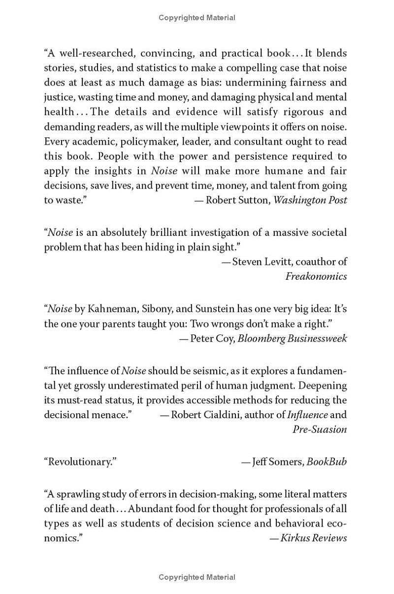 Packed with original ideas, and offering the same kinds of research-based insights that made Thinking, Fast and Slow and Nudge groundbreaking New York Times bestsellers, Noise explains how and why humans are so susceptible to noise in judgment--and what we can do about it.