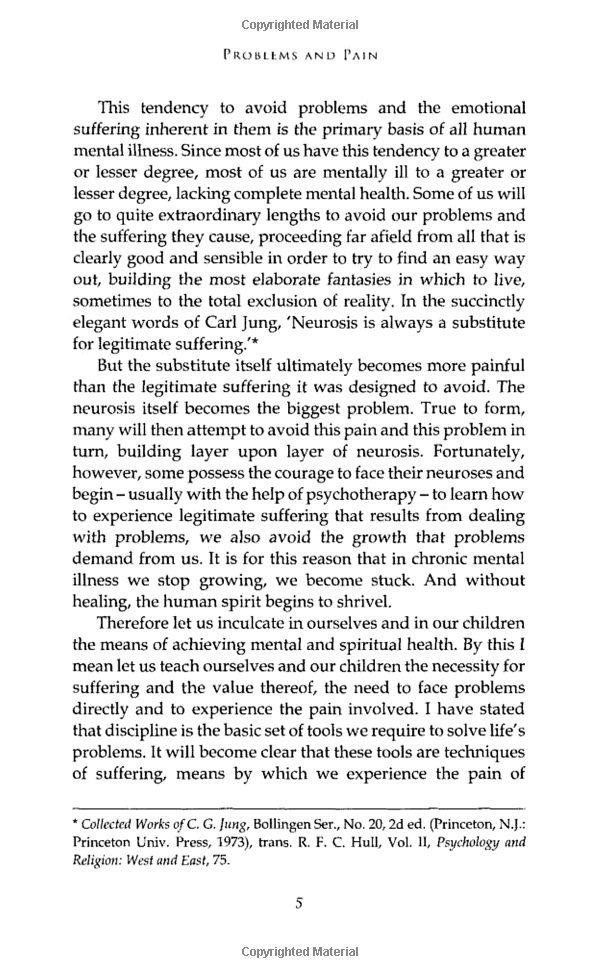 Confronting and solving problems is a painful process which most of us attempt to avoid. And the very avoidance results in greater pain and an inability to grow both mentally and spiritually. Drawing heavily on