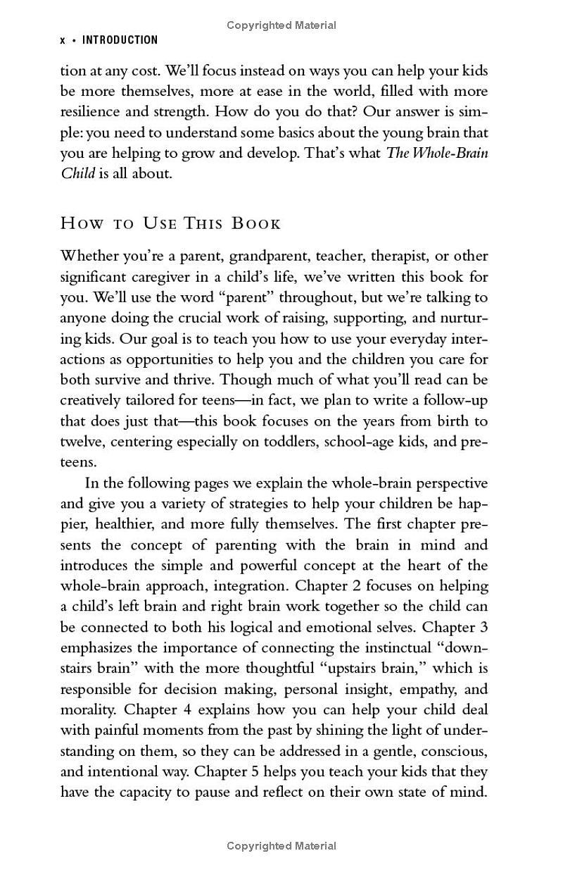 Complete with age-appropriate strategies for dealing with day-to-day struggles and illustrations that will help you explain these concepts to your child, The Whole-Brain Child shows you how to cultivate healthy emotional and intellectual development so that your children can lead balanced, meaningful, and connected lives.