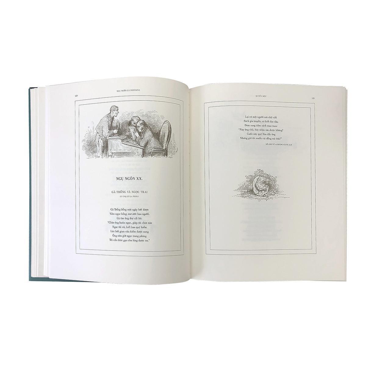 Nhà ngôn ngữ học, Nam tước Silvestre de Sacy đã nhận xét: “Ngụ ngôn La Fontaine mang đến niềm hứng khởi cho ba lứa độc giả khác nhau: các em nhỏ hân hoan với sự tươi mới và sinh động của câu chuyện, các sinh viên khoa văn háo hức với nghệ thuật thơ tuyệt diệu, còn người từng trải chìm đắm trong mạch chiêm nghiệm sâu sắc về tính cách và cuộc sống mà ngụ ngôn truyền tải.” Mượn điển tích từ thần thoại Hy Lạp, La Mã và ngụ ngôn của hai nhà hiền triết Ésope và Pilpay, đặt lời thơ vào miệng của những loài vật gần gũi, bằng giọng thơ hóm hỉnh, đôi khi pha chút giọng điệu châm biếm và khéo léo lồng ghép những bài học luân lý, ngụ ngôn La Fontaine đã trở thành món ăn tinh thần cho nhiều thế hệ độc giả. Tại Việt Nam, ngay từ đầu thế kỷ XX, khi chữ quốc ngữ mới được phổ biến, độc giả đã được thưởng thức ngụ ngôn La Fontaine qua các bản dịch thơ của học giả Nguyễn Văn Vĩnh được đăng báo từ năm 19 và in thành sách lần đầu vào năm 1916. Từ đó về sau, có không ít các tuyển tập thơ dịch ngụ ngôn La Fontaine ra đời nhờ công chuyển ngữ của nhiều dịch giả. Tuy nhiên, trải qua hơn một thế kỷ, bạn đọc trong nước vẫn chưa được tiếp cận bản dịch toàn tập ngụ ngôn La Fontaine, gồm 12 quyển với 240 ngụ ngôn, với cơ man kiến thức, giá trị nghệ thuật và luân lý được gói ghém trong những vần thơ tinh tế và trang nhã. Nhân dịp kỷ niệm 400 năm ngày sinh của thi hào Pháp, Đông A trân trọng giới thiệu đến bạn đọc ấn bản ngụ ngôn La Fontaine đầy đủ nhất từ trước đến nay. Ấn bản mới được thực hiện theo bản in năm 1868 của nhà Hachette, gồm 12 quyển với 240 ngụ ngôn từng được xuất bản trong sinh thời của La Fontaine và lời nói đầu của chính tác giả, kèm bài khảo cứu chi tiết về tiểu sử nhà thơ của Géruzez, với các bức minh họa sống động của họa sĩ bậc thầy Gustave Doré. Trong ấn bản này, Doré thực hiện 85 bức minh họa khổ lớn và gần 500 minh họa nhỏ, với hàng trăm hình tượng con người, thần thánh và các loài vật. Trong mỗi bức minh họa, người họa sĩ bậc thầy mở ra một không gian hữu hình và lôi cuốn độc giả bước vào thế giới ngụ ngôn sống động của La Fontaine. Về bản dịch thơ, bên cạnh các bài dịch quen thuộc của các dịch giả kỳ cựu như Nguyễn Văn Vĩnh, Tú Mỡ, Huỳnh Lý, Nguyễn Đình, bạn đọc sẽ được làm quen với các bản dịch của các cây bút mới. Sự hòa thanh của các dịch giả đời trước và các dịch giả đời nay trong ấn bản toàn tập La Fontaine đầu tiên ở Việt Nam sẽ phần nào mở ngỏ cho thấy sự phát triển của ngôn ngữ tiếng Việt trong suốt một thế kỷ qua.