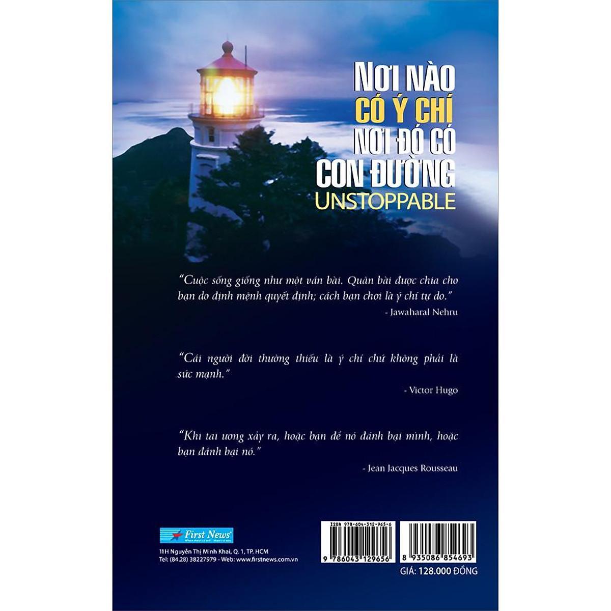 - UNSTOPPABLE - Cuộc đời của mỗi con người chủ yếu được quyết định bởi ý chí của bản thân chứ không phải được định đoạt bởi số phậnChắc chắn ai trong chúng ta cũng từng có ý nghĩ muốn từ bỏ một việc gì đó. Quyết định từ bỏ thường đi kèm với lý lẽ biện minh rằng việc này quá khó hay không phù hợp với năng lực của mình. Chúng ta cũng dễ bị thối chí khi nghe lời bàn ra tán vào của những người xung quanh hoặc bởi những điều khắc nghiệt xảy ra trong cuộc sống. Lo sợ thất bại hay đắn đo muốn bỏ cuộc là biểu hiện hết sức bình thường của mỗi người khi gặp khó khăn, ngay cả những người đã thành công hoặc thành danh cũng đều trải qua những giai đoạn tương tự. Tuy nhiên, sau tất cả, những người thành công đều có điểm chung: tinh thần cầu tiến, ham học hỏi và không chùn bước trước khó khăn. Chỉ có ý chí thì chưa đủ đi đến thành công, nhưng để thành công thì ý chí là điều cốt lõi. Nơi nào có ý chí, nơi đó có con đường mang đến cho người đọc những câu chuyện vượt lên nghịch cảnh của những con người mà tên tuổi của họ ngày nay được cả thế giới biết đến. Phần lớn trong số họ có được sự ủng hộ, giúp đỡ và tin tưởng từ gia đình và bạn bè. Tuy nhiên, “tài sản” lớn nhất của họ vẫn là ý chí. Đó là nội lực giúp họ vượt qua mọi rào cản, từ những khiếm khuyết trên cơ thể, đến sự dèm pha từ người khác hay sự thiếu thốn trong điều kiện sống. Chẳng hạn như nữ văn sĩ J. K. Rowling với bộ truyện Harry Potter nổi tiếng, Kemmons Wilson và chuỗi khách sạn Holiday Inn, hay Linda Bremmer với tổ chức từ thiện Love Letters , trước đó, họ đều có những gánh nặng, lo toan trong cuộc sống như những người bình thường khác. Thậm chí, một vài người trong số họ ở tận cùng của đau khổ, đói nghèo và bệnh tật. Quyền năng duy nhất mà họ có được là niềm tin vào bản thân và quyết tâm thay đổi để làm cho cuộc sống tốt đẹp hơn. Điều này đã biến họ thành “Người sắt Kansas”, “Bộ óc vĩ đại”, hay “Người đầu tiên trở thành tỷ phú bằng nghề viết sách”. Với hai mươi sáu câu chuyện, Nơi nào có ý chí, nơi đó có con đường đã tái hiện hành trình cuộc sống của từng nhân vật, trong đó, họ vượt qua những thử thách trong cuộc đời, vượt lên trên nghịch cảnh để đạt được hoài bão của mình. Xen kẽ các mẩu chuyện là những thông điệp ý nghĩa, mang tính chất truyền lửa mà tác giả muốn gửi gắm đến bạn đọc trên hành trình khám phá cuộc sống của mình. Không giáo điều, không răn dạy, tác giả Cynthia Kersey chỉ muốn giúp người đọc có thêm trải nghiệm, để từ đó xây dựng cho mình một nhân sinh quan vững vàng, và quan trọng là khuyến khích chúng ta nuôi dưỡng một ý chí mạnh mẽ để đối diện với nghịch cảnh khi cần. Nơi nào có ý chí, nơi đó có con đường lôi cuốn độc giả hòa mình vào từng câu chuyện, để từ đó cảm thấy nhẹ lòng hơn với những khó khăn mà chính mình đang gặp phải, khi đọc về cuộc đời của nhà văn Noreen Ayres, nữ văn sĩ kiêm nhà hoạt động xã hội Helen Keller, hay nhà vật lý thiên tài Stephen Hawking. Thông điệp cuối cùng mà tác giả muốn khắc sâu trong tâm trí người đọc chính là: “Vấn đề không phải là ở tuổi tác, khả năng hay sức mạnh. Vấn đề là ở ý chí”. Về tác giả: Cynthia Kersey là một nhà văn người Mỹ. Cô từng là khách mời của người dẫn chương trình nổi tiếng Oprah Winfrey và xuất hiện trên nhiều tạp chí. Cô là người sáng lập Unstoppable Enterprises, Inc. và tổ chức Unstoppable Foundation. Cô hiện đang sống tại Thousand Oaks, California, Hoa Kỳ.