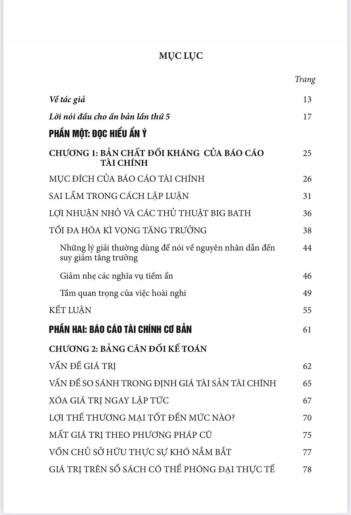 Hiểu báo cáo tài chính là một kỹ năng thiết yếu đối với các chuyên gia kinh doanh và nhà đầu tư. Hầu hết các cuốn sách về chủ đề này đều dựa trên giả định đầy nghi vấn rằng mục tiêu của các công ty là trình bày một bức tranh chân thực về tình hình tài chính của họ. Một giả định an toàn hơn là các công ty tìm cách tối thiểu hóa chi phí huy động vốn bằng cách thể hiện bản thân một cách tốt nhất có thể. “Phân Tích Báo Cáo Tài Chính” dạy người đọc những thủ thuật mà các công ty sử dụng để đánh lừa, giúp người đọc có thể diễn giải rõ hơn các báo cáo.