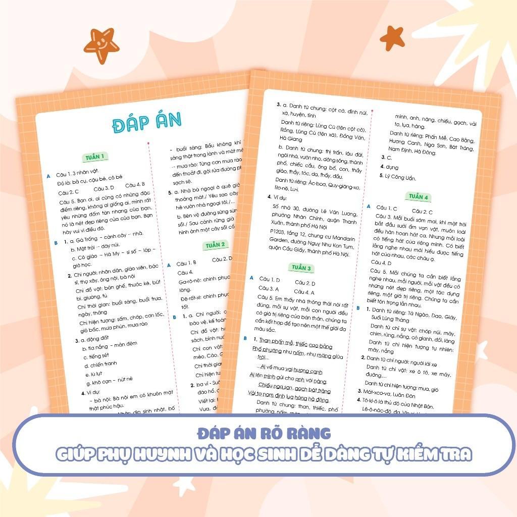 - Hệ thống các bài tập phong phú, mang tính tổng hợp và ôn luyện toàn diện. Hệ thống bài tập đa dạng, lượng phù hợp với việc học cuối tuần để các con vẫn có thời gian thư giãn và vui chơi. Đặc biệt, sau mỗi kì sẽ có bài ôn tập giữa kì và cuối kì giúp con có tài liệu ôn tập cho các kì kiểm tra.