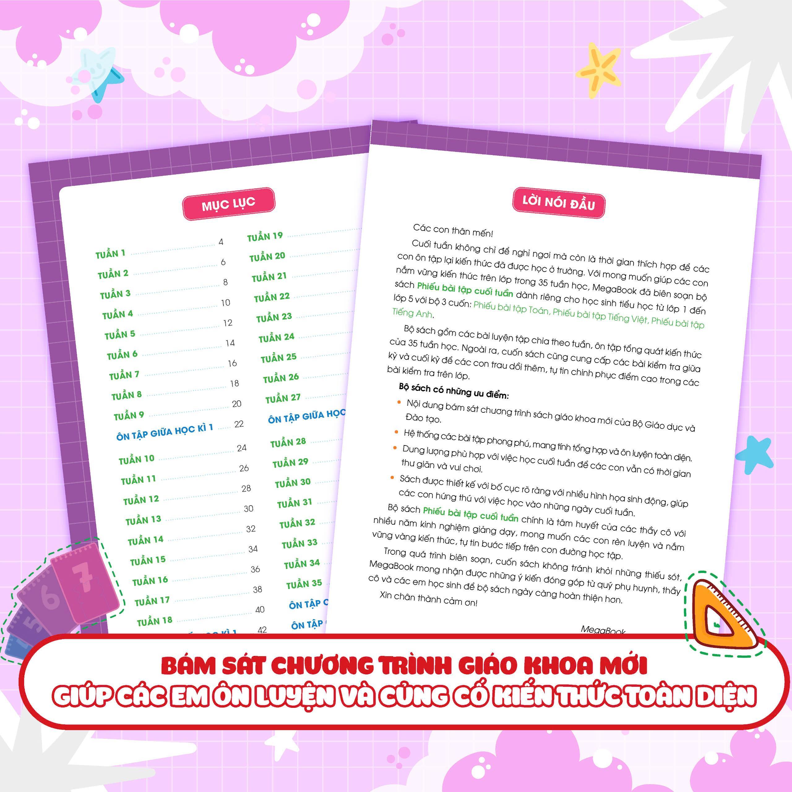 ✨Sách - Phiếu Bài Tập Cuối Tuần Toán, Tiếng Việt, Tiếng Anh Lớp 3 - Chọn Lẻ 3 Môn - Megabook