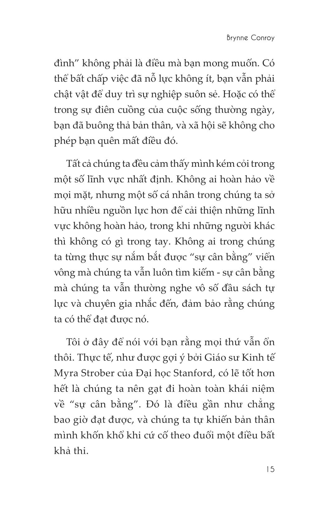 4. Tác động qua lại giữa mọi khía cạnh: nơi tiền bạc, sức khỏe tinh thần, các chuẩn mực văn hóa và bạo lực tài chính không còn là những chủ đề riêng biệt. Điểm nổi bật của cuốn sách là khả năng dung hòa giữa dữ liệu thực tiễn và trải nghiệm cá nhân. Mỗi chương không chỉ cung cấp kiến thức, mà còn là một lời mời để độc giả tự soi lại hệ thống giá trị và ưu tiên của m.ình. Câu chuyện của những người phụ nữ đã bước qua nghịch cảnh bằng nội lực và chiến lược rõ ràng được lồng ghép tinh tế, khiến thông điệp trở nên chân thực và truyền cảm hứng. “Phụ nữ độc lập tài chính” không nhằm biến tất cả phụ nữ thành triệu phú, mà trao cho họ một công cụ tư duy mới: rằng bạn không cần trở nên hoàn hảo, nhưng bạn hoàn toàn có thể trở nên tự do. Trong thế giới mà lựa chọn đúng đắn thường bị đánh giá bằng thước đo của người khác, đây là cuốn sách cổ vũ cho lựa chọn của chính bạn, dù đó là làm CEO, nội trợ, du mục kỹ thuật số hay bất kỳ vai trò nào bạn thấy đáng sống. Về tác giả Brynne Conroy là cây viết kỳ cựu chuyên về tài chính cá nhân và là người sáng lập trang The Feminist Financier - nền tảng truyền cảm hứng cho hàng nghìn phụ nữ Mỹ. Khác với những cố vấn tài chính truyền thống, Brynne bước vào lĩnh vực này từ trải nghiệm thực tế của một người mẹ đơn thân, từng chật vật trong nghèo khó và phải tự xây dựng toàn bộ kiến thức tài chính từ con số 0. Cô là một trong số ít những người đưa lăng kính nữ quyền vào phân tích tài chính, cô không chỉ quan tâm đến con số, mà còn đi sâu vào các yếu tố văn hóa, giới tính, c.hủng tộc và hệ thống xã hội. Văn phong của Brynne giàu dữ liệu, sắc bén về logic nhưng không khô cứng, luôn đặt con người – đặc biệt là phụ nữ – vào trung tâm của mọi chiến lược tài chính. “Phụ nữ độc lập tài chính” là tác phẩm tiêu biểu kết tinh cả chiều sâu tư tưởng lẫn thực tiễn hành động trong hơn một thập kỷ nghiên cứu và đồng hành cùng cộng đồng phụ nữ của cô.