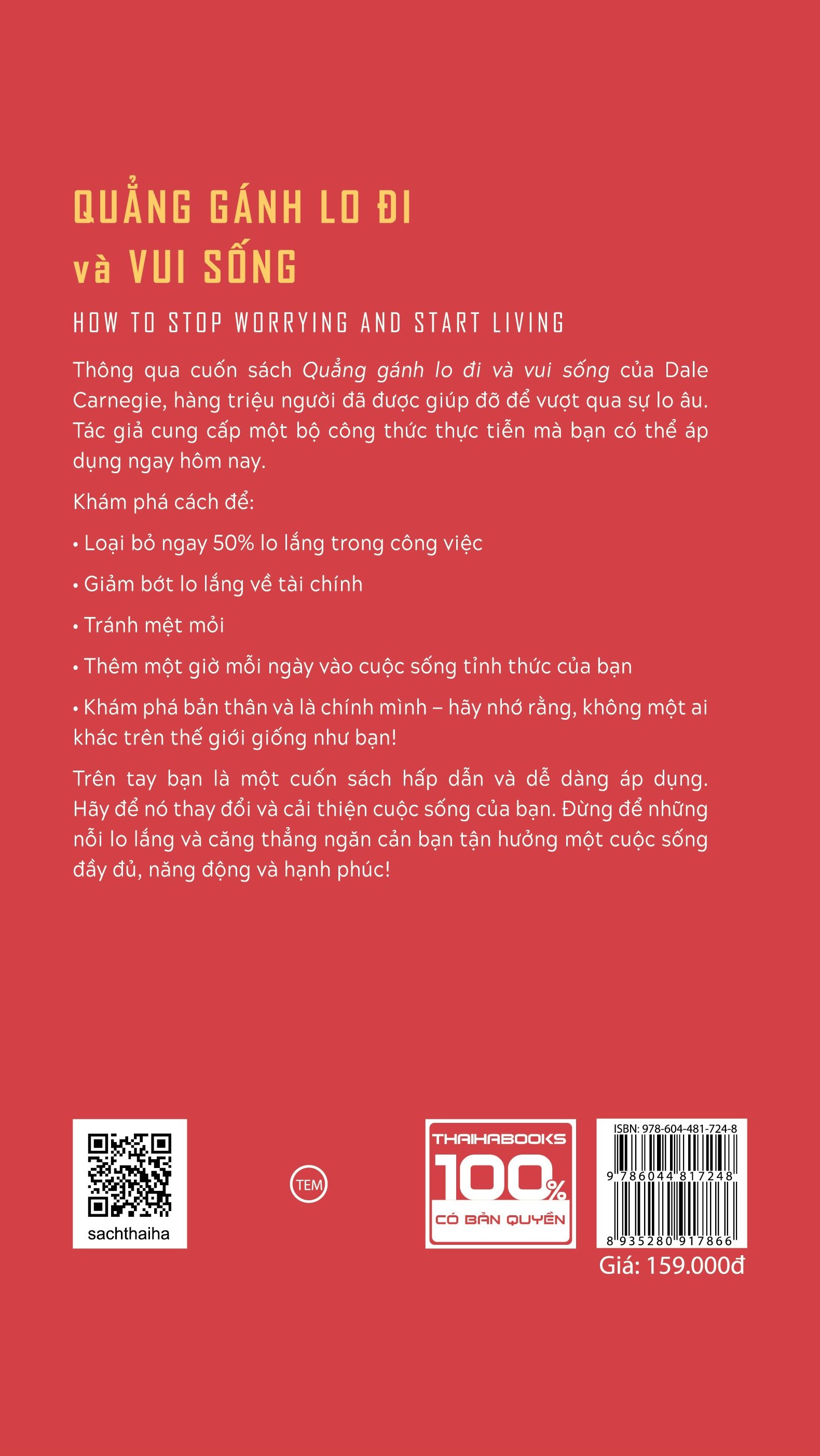 Trên tay bạn là một cuốn sách hấp dẫn và dễ dàng áp dụng. Hãy để nó thay đổi và cải thiện cuộc sống của bạn. Đừng để những nỗi lo lắng và căng thẳng ngăn cản bạn tận hưởng một cuộc sống đầy đủ, năng động và hạnh phúc!