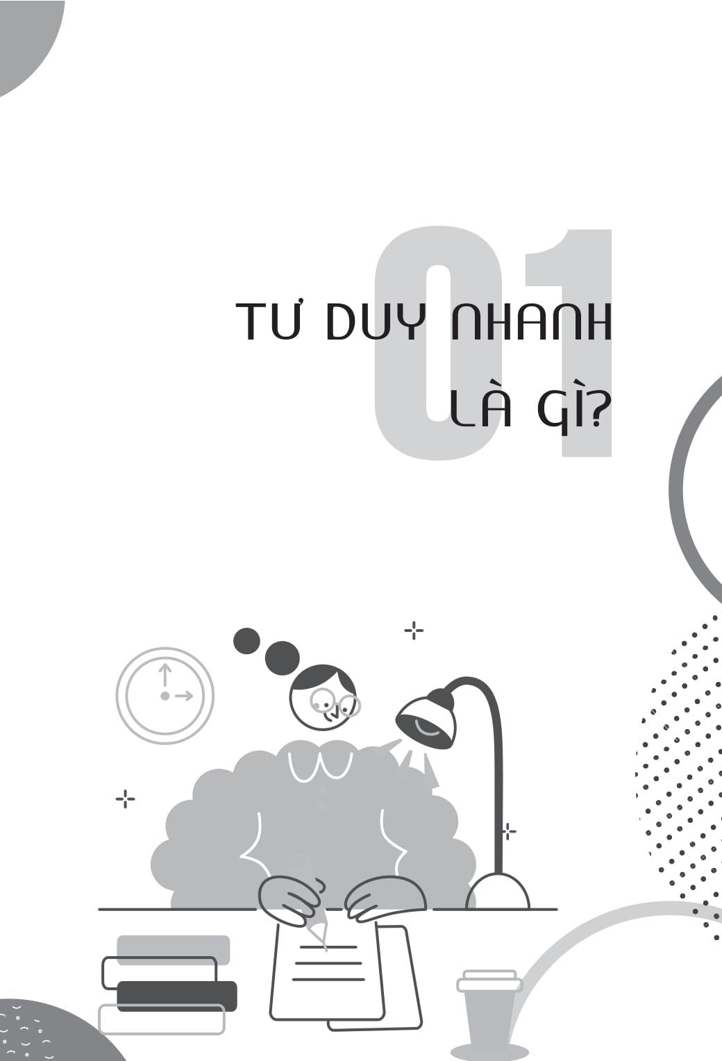 • Phần 1: Giải thích bản chất và vai trò của tư duy nhanh, giúp người đọc hiểu được lợi ích cụ thể như nâng cao khả năng ứng biến, ra quyết định chính xác trong áp lực thời gian, cải thiện hiệu quả giao tiếp và xử lý vấn đề.
