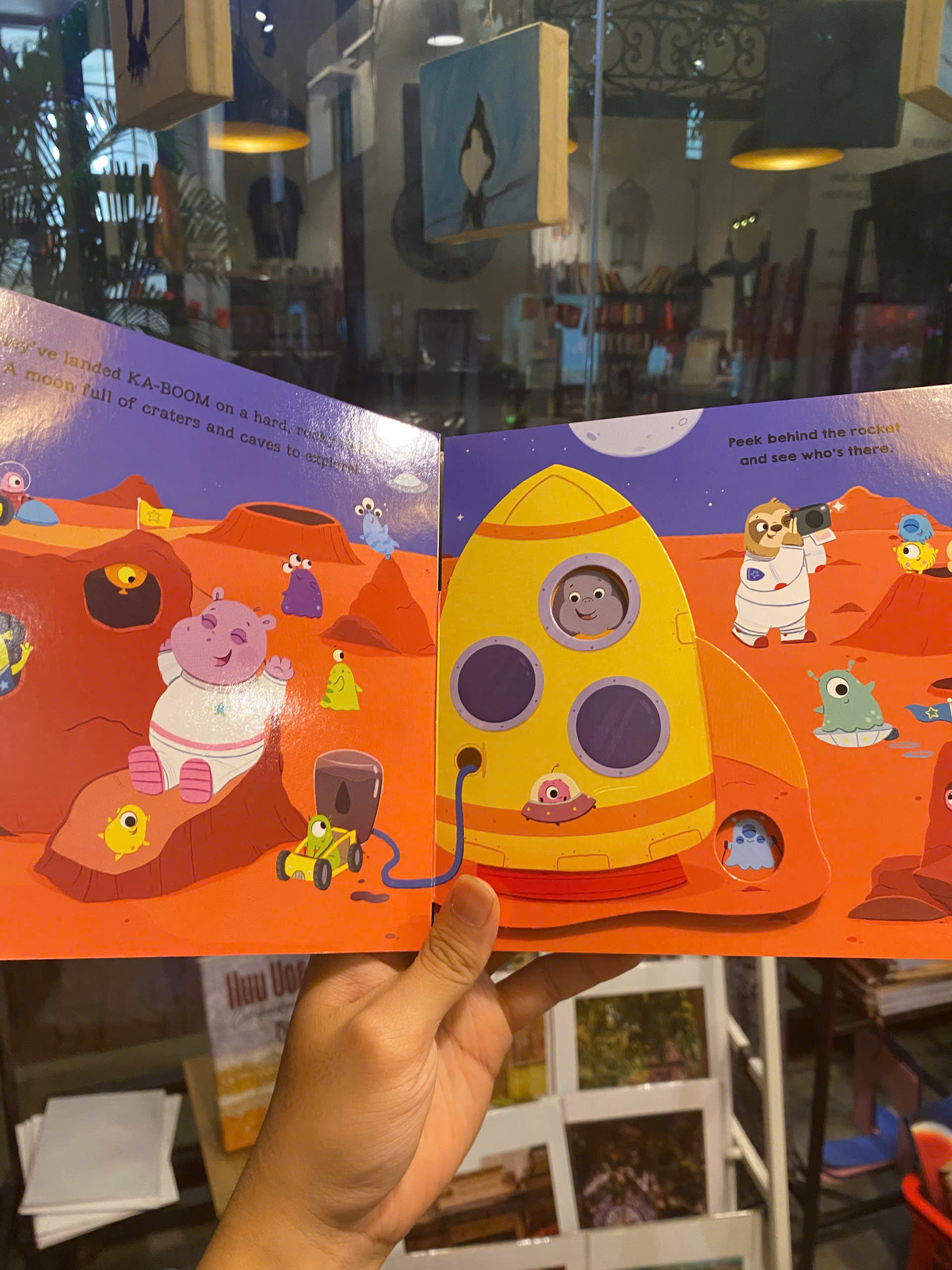 Hãy đắm mình vào sự bao la của vũ trụ và trải nghiệm những điều kỳ diệu của không gian. Với vô số lỗ hổng và những cánh cửa để mở, mỗi trang sách hứa hẹn một khám phá thiên hà mới. Trong Space Adventure: Peep-through Surprise, hãy cùng những nhà thám hiểm liên sao thực hiện hành trình xuyên qua các thiên hà. Trong hành trình của mình, hãy nhìn qua các lỗ hổng và lật các cánh cửa để khám phá những điều bất ngờ thú vị đang chờ đón bạn trong không gian bao la.