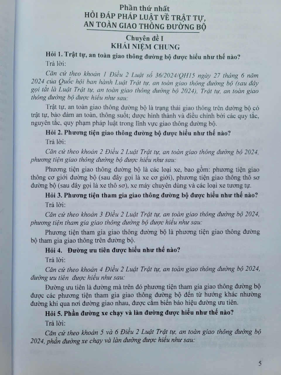 Phần thứ nhất. HỎI ĐÁP PHÁP LUẬT VỀ TRẬT TỰ, AN TOÀN GIAO THÔNG ĐƯỜNG BỘ