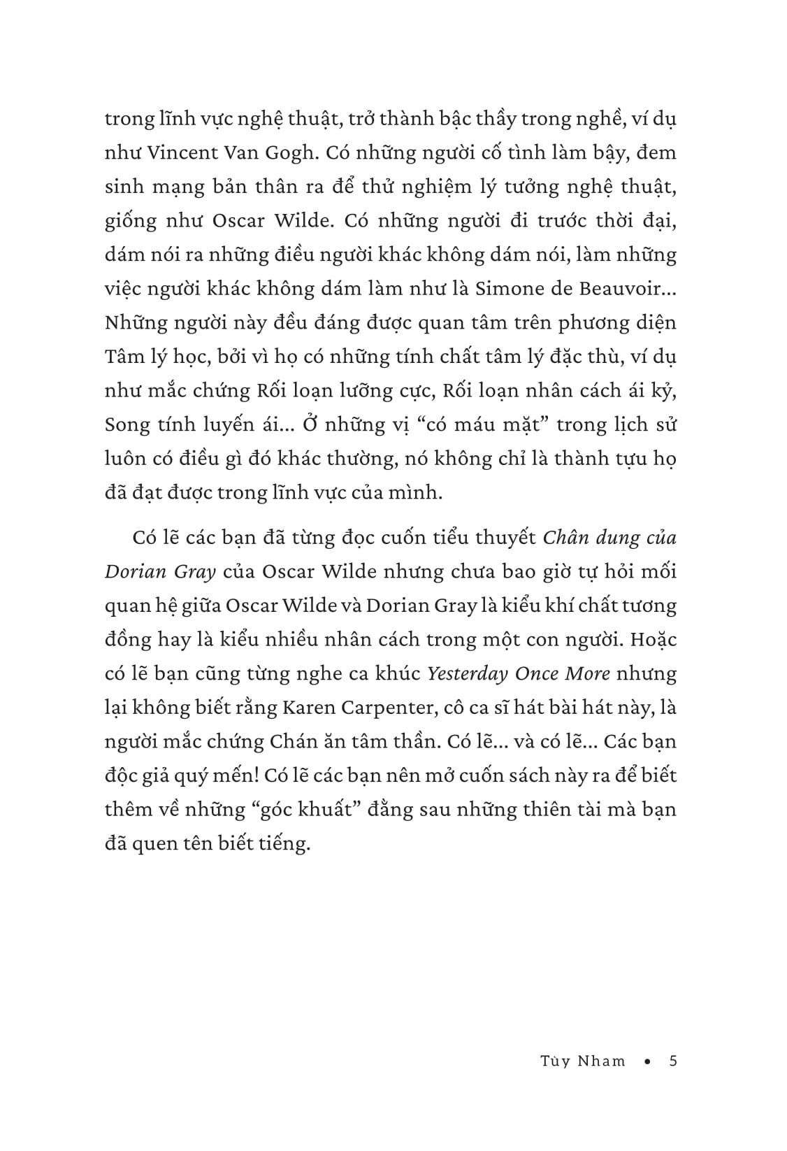 Cuốn sách này sẽ đưa bạn vào thế giới của những con người phi thường, những thiên tài từng bị xem là kẻ điên, những cá nhân mang tâm hồn vỡ vụn nhưng để lại dấu ấn sâu đậm trong lịch sử nhân loại. Từ Vincent van Gogh, người họa sĩ thiên tài sống trong nghèo đói và đau đớn tinh thần, đến Oscar Wilde, bậc thầy văn chương bị xã hội ruồng bỏ; từ những bộ óc siêu việt đến những cá nhân dám phá vỡ mọi khuôn khổ - họ đều là những nhân vật mà xã hội không thể lý giải.