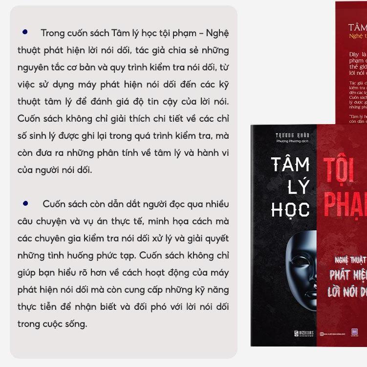 Tên sản phẩm: Sách Bizbooks - Sách Tâm Lý Học Tội Phạm - Nghệ Thuật Phát Hiện Lời Nói Dối