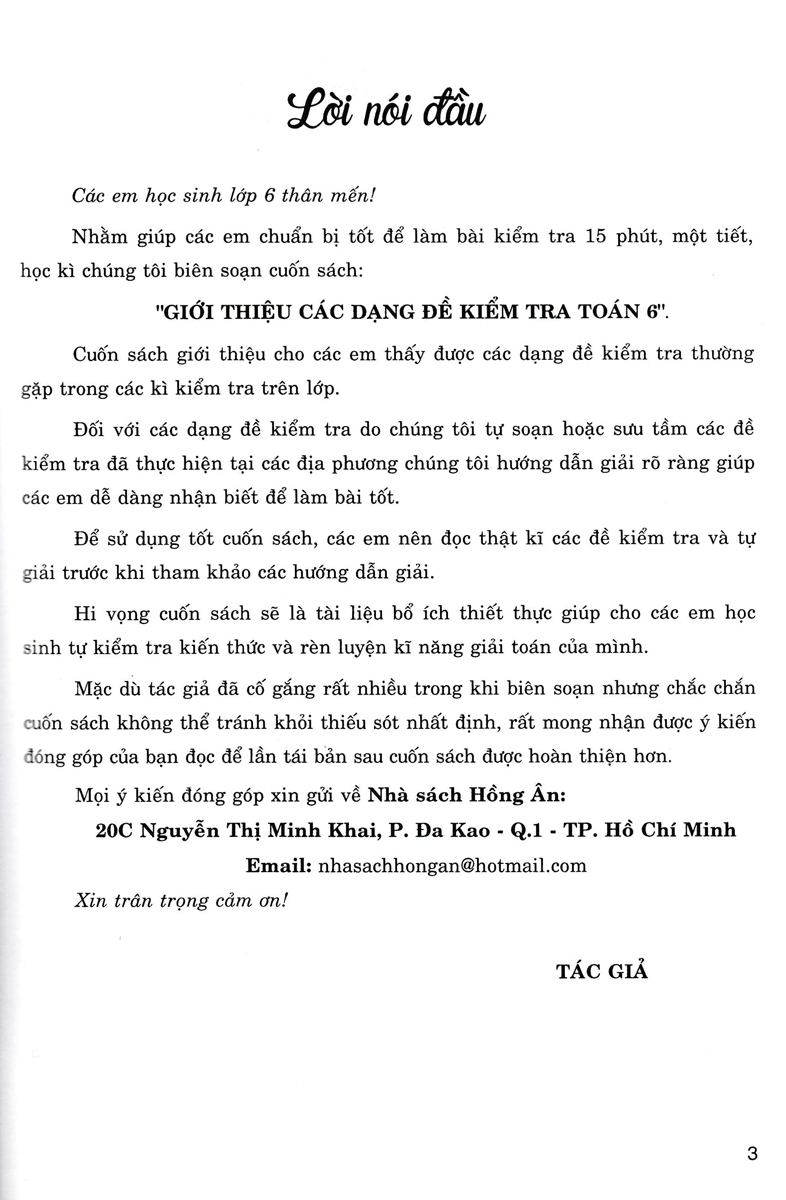 Giới Thiệu Các Dạng Đề Kiểm Tra Toán Lớp 6. Cuốn sách giới thiệu cho các em thấy được các dạng đề kiểm tra thường gặp trong các kì kiểm tra trên lớp.