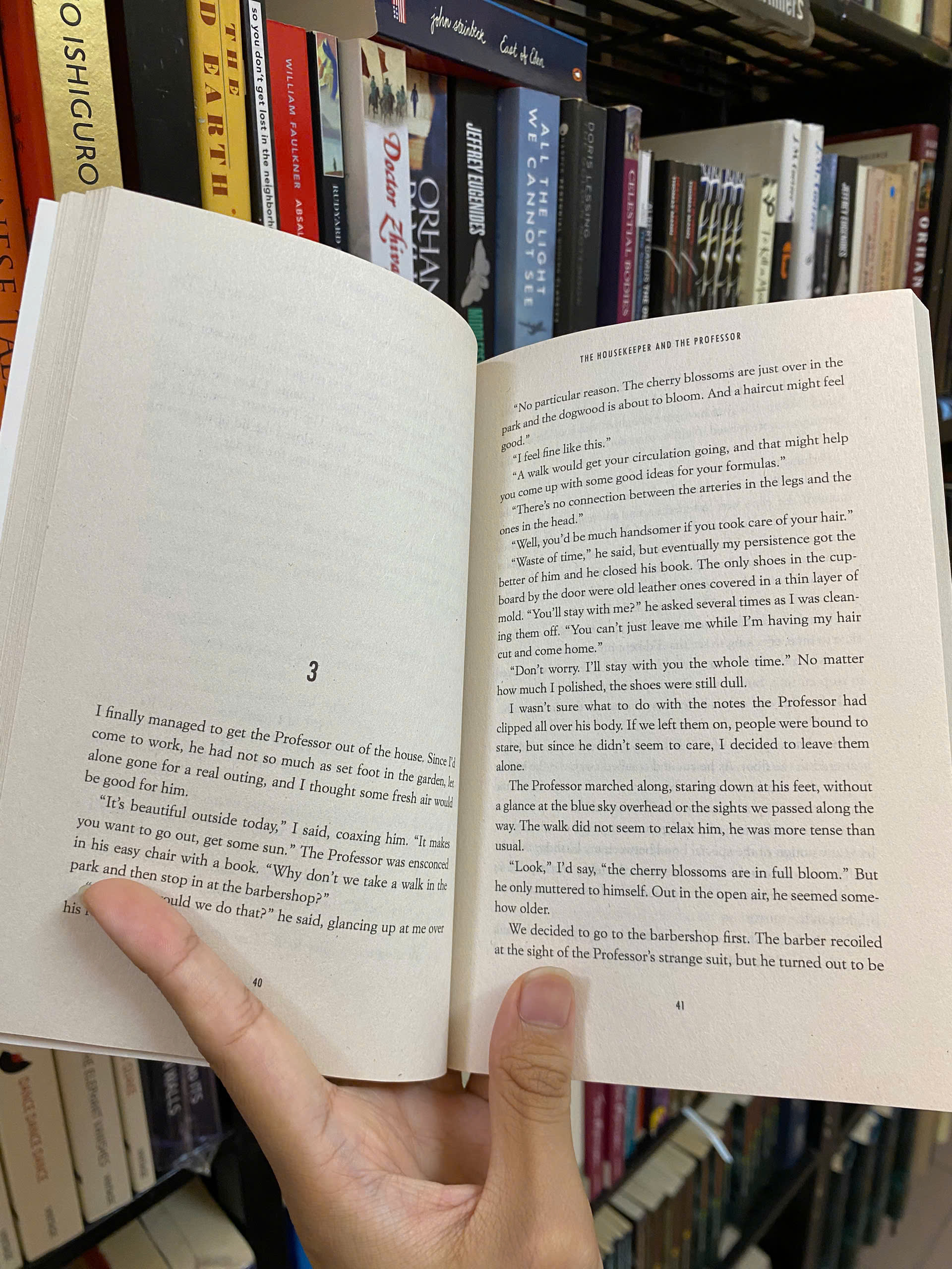 Every morning, when the Professor and the Butler are reintroduced to each other, a strange, beautiful relationship blossoms between them. The professor may not remember what he had for breakfast, but his mind is still alive with elegant equations from the past. He devises clever mathematical puzzles - based on her shoe size or date of birth - and the numbers reveal a poetic and sheltering world for both the Butler and her ten-year-old son. she. With each new equation, three lost souls forged a feeling more mysterious than imagined numbers, and a bond deeper than memory.