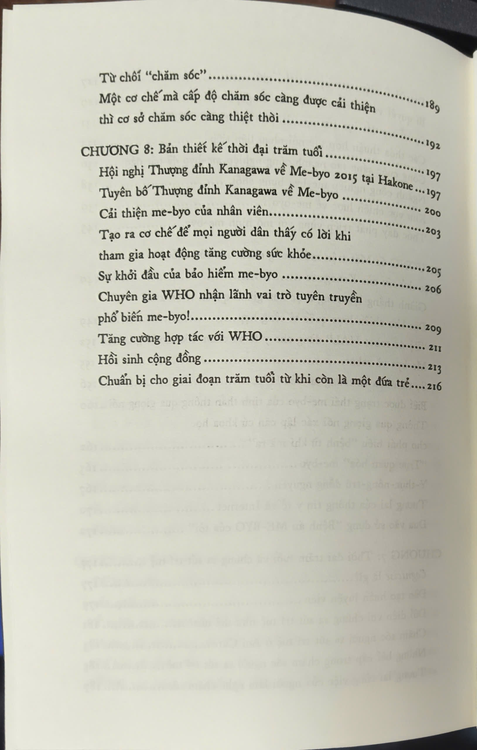 Nhật Bản đang chuẩn bị bước vào kỷ nguyên xã hội siêu già hóa, với số lượng người cao tuổi nhiều nhất từ trước đến nay, dự kiến đến năm 2050, cứ 142 người Nhật sẽ có 1 người trên 100 tuổi, đây là một thách thức rất lớn cho toàn xã hội, đặc biệt là hệ thống phúc lợi, y tế và bảo hiểm. Để chuẩn bị cho tương lai này, với cương vị là Thống đốc tỉnh Kanagawa, tác giả Kuroiwa Yuji đã đưa ra rất nhiều thảo luận, trong đó tập trung vào khái niệm me-byo, một trạng thái ở giữa khỏe mạnh và bệnh tật. Trong cuốn sách này, ông chia sẻ về khái niệm me-byo, cũng như khuyến khích thay đổi lối sống và tạo dựng một hệ thống xã hội phù hợp nhằm cải thiện trạng thái me-byo của cá nhân cũng như toàn xã hội, từ đó chuẩn bị cho “thời đại trăm tuổi” trong tương lai không xa.