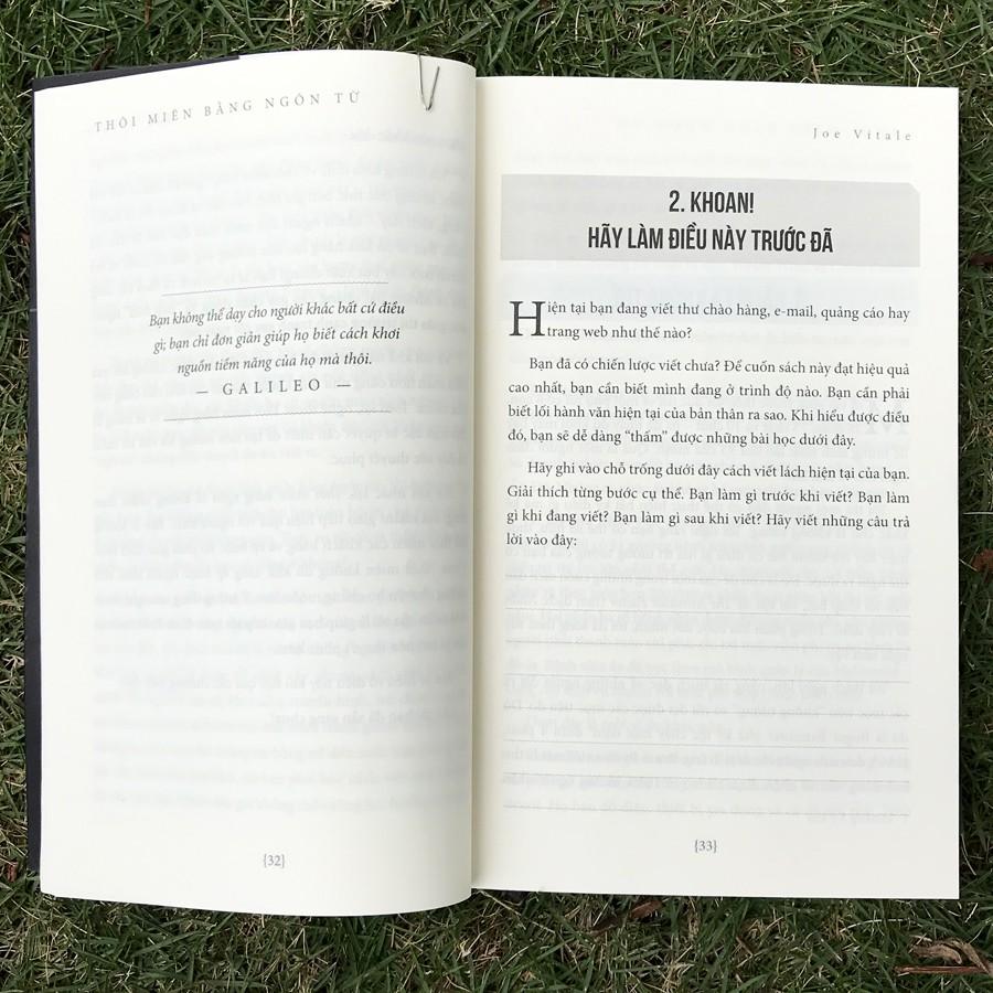 Mua tại TiktokThôi miên bằng ngôn từ (Bìa đen) Chắc hẳn bạn sẽ không muốn độc giả chìm vào giấc ngủ và tôi cũng vậy. “Thôi miên bằng ngôn từ”, theo tôi, là bất cứ cách viết lách nào khiến người đọc không thể cưỡng lại mà cứ đọc, đọc nữa, đọc mãi. Những câu chữ khiến mắt bạn dán chặt vào trang sách. Ngôn từ mạch lạc, súc tích, và hiệu quả, lôi cuốn bạn đọc hết từng từ, từng chữ một. Và hơn thế nữa, Thôi miên bằng ngôn từ khiến bạn phải ghi nhớ – và hành động – theo những gì bạn đã đọc.