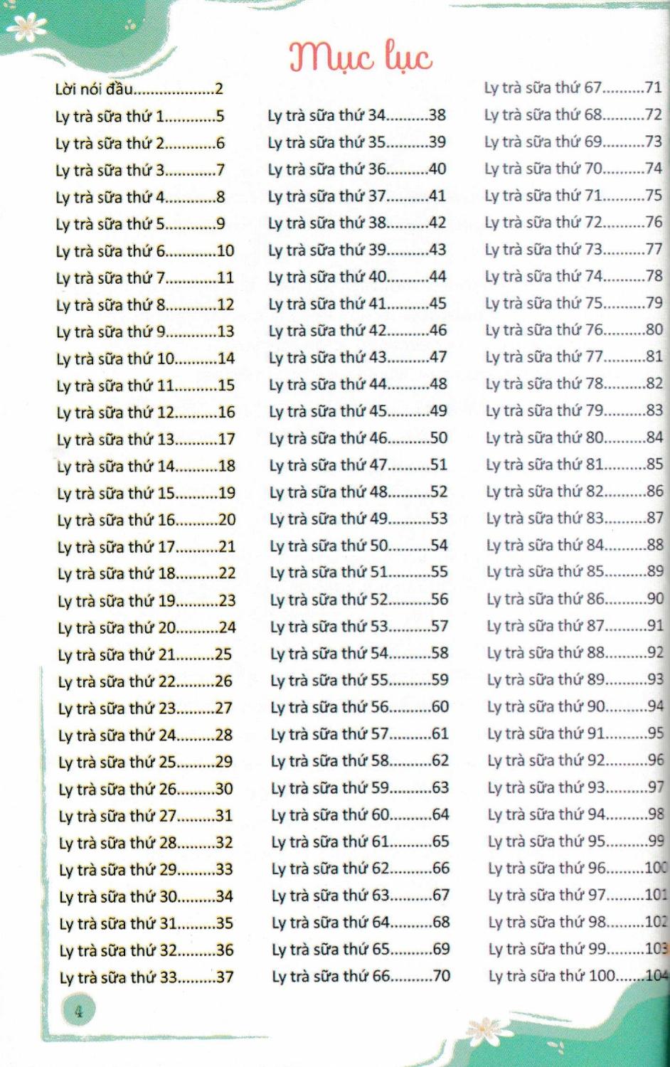Trong TRÀ SỮA CÙNG GENZ, tác giả mang tặng bạn đọc 100 ly trà sữa với những cung bậc cảm xúc khác nhau: có vui, có buồn, có khích lệ, có nhắn nhủ, có chuyện học tập, có chuyện tình yêu tuổi học trò... trong đó đều kèm theo những chỉ dẫn khá nhẹ nhàng, kiểu như: "Hi vọng bạn sẽ không so sánh bản thân với người khác, mà hãy luôn cố gắng rèn luyện để phát huy những gì m.ình đang có và tỏa sáng lộng lẫy, rực rỡ theo cách của riêng bạn"; "Trưởng thành là khi bạn bắt đầu ý thức về trách nhiệm với bản thân, gia đình và xã hội. Trường thành là khi bạn có quyền đưa ra những sự lựa chọn cho cuộc đời của chính m.ình";...