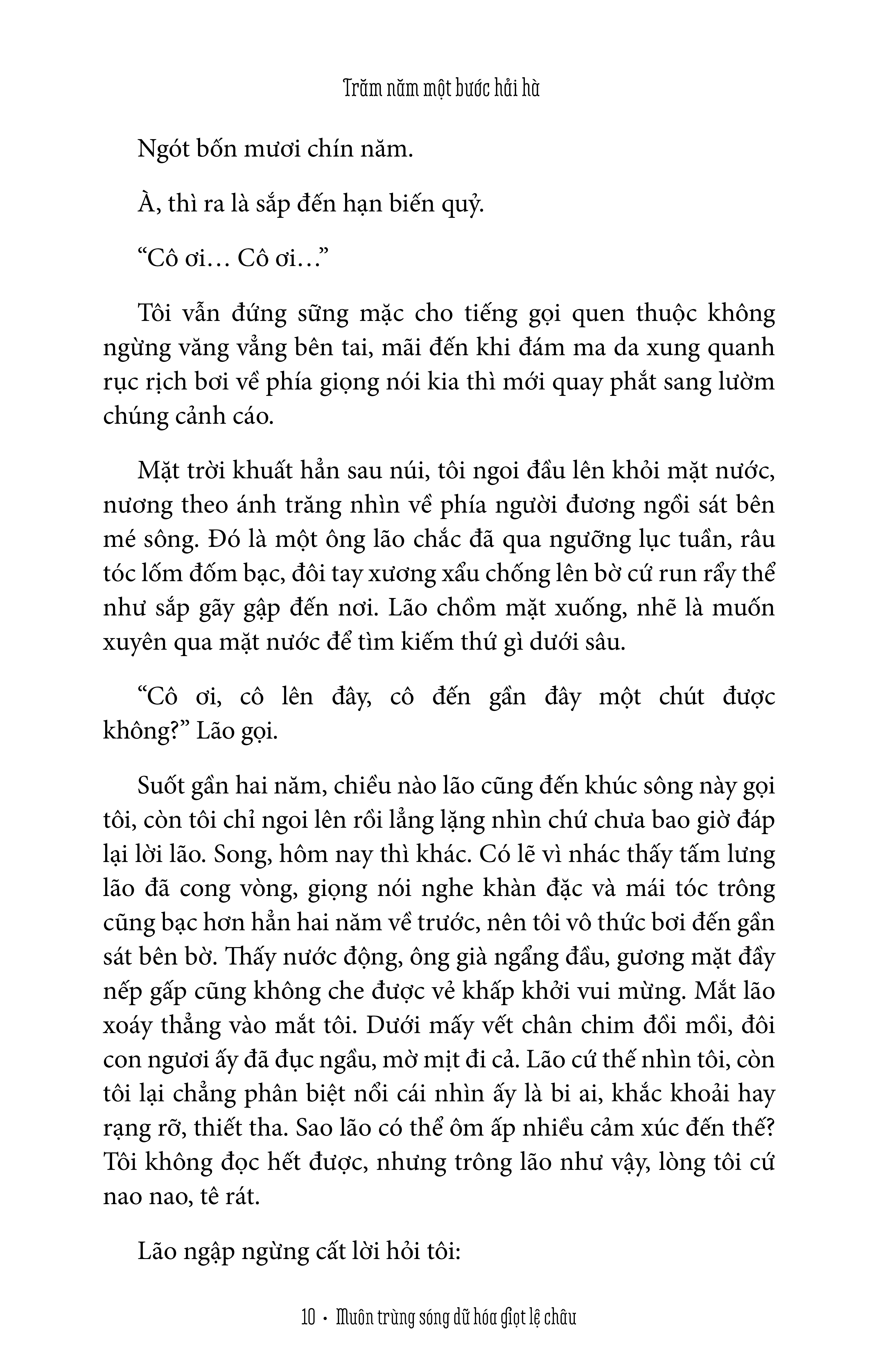 Trong trăm năm chảy trôi của lịch sử, núi sông đã chứng kiến bao hưng thịnh rồi suy tàn, từ lớp người này đến lớp người kia xuất hiện rồi biến mất. Suốt dòng chảy không ngừng đó, chuyện gì đã xảy ra? Con người ta đã trải qua những gì giữa lằn ranh sinh tử khi đất nước chuyển mình, điêu linh?