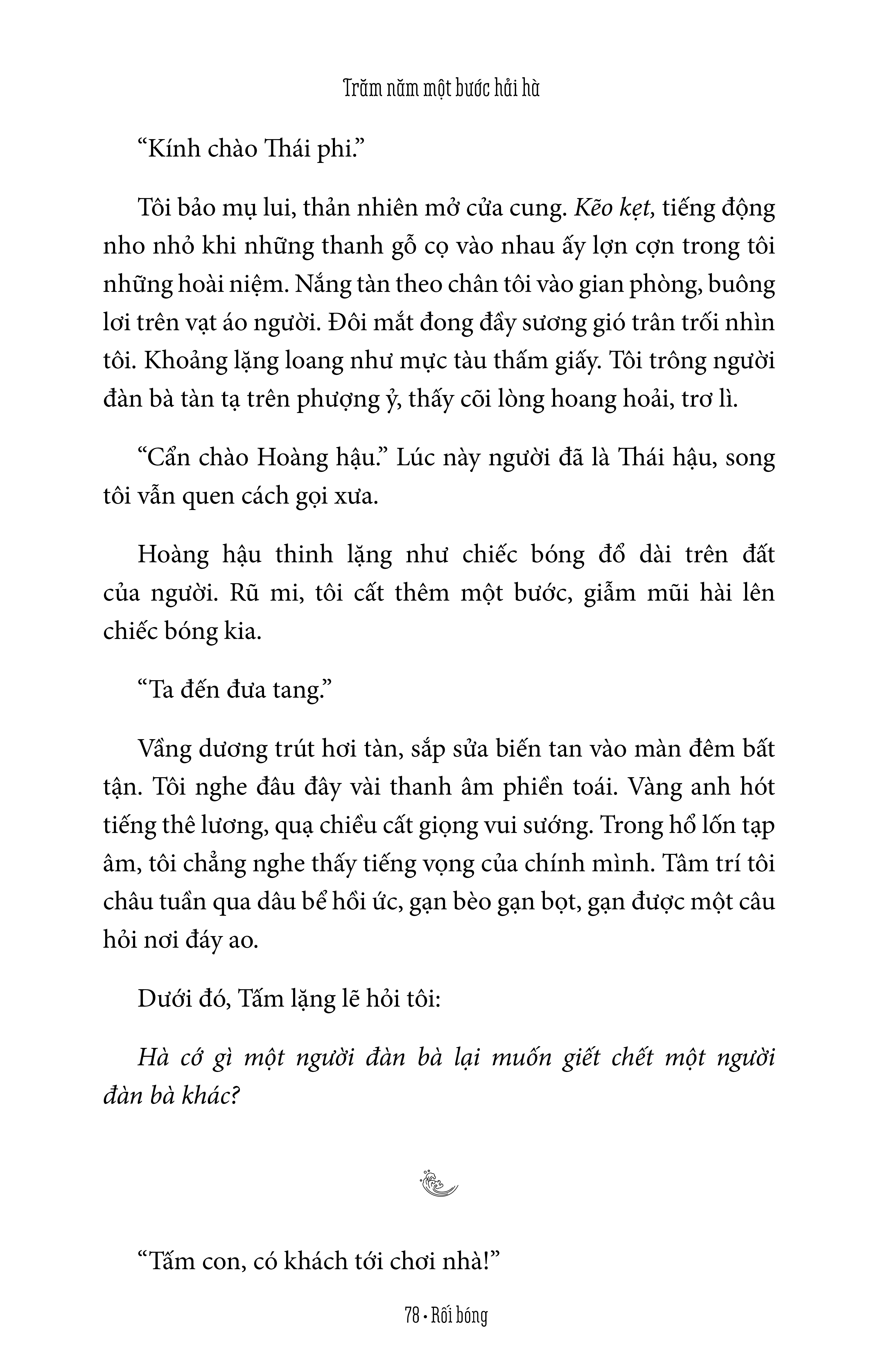 Trăm năm một bước hải hà - Lịch sử trăm năm nhìn lại chỉ còn gom vào một bước chân. Nhưng trong một bước này là hàng trăm bước của hàng triệu cuộc đời vô tình gặp gỡ, cùng dệt hoa trên gấm, tạo nên bức tranh sơn hà cẩm tú bấy lâu.