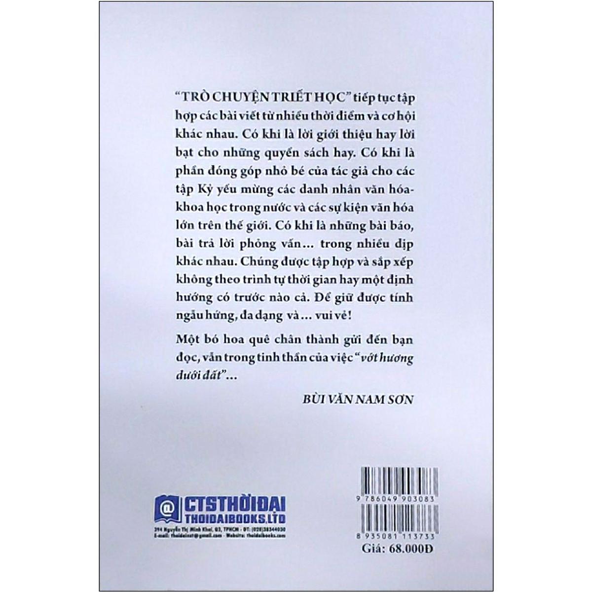 Trò Chuyện Triết Họclà tập hợp 92 bài viết của nhà nghiên cứu triết học Bùi Văn Nam Sơn, đăng trên báo Sài Gòn Tiếp Thị gần 2 năm (25.5.2010 – 16.4.2012).