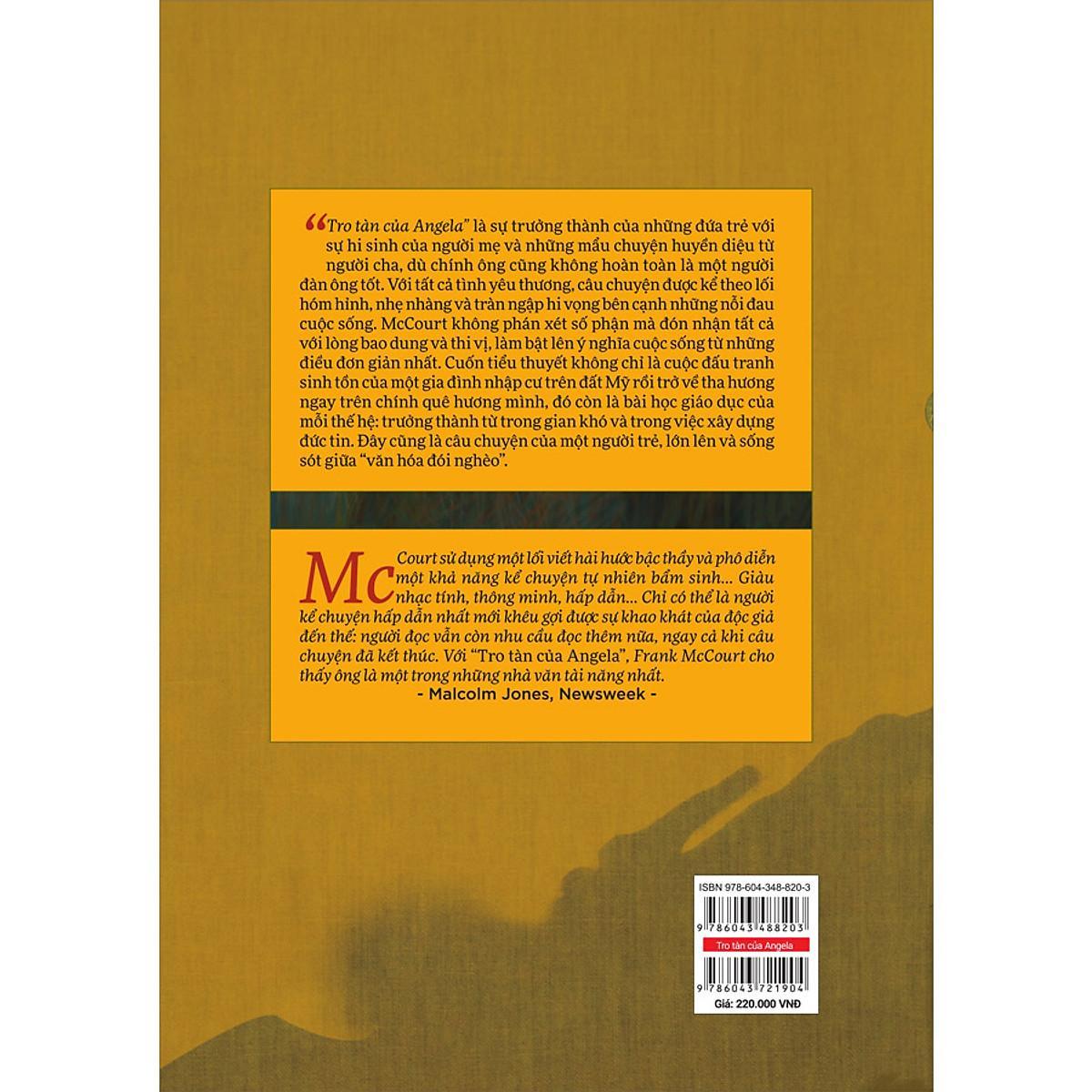 • McCourt sử dụng một lối viết hài hước bậc thầy và phô diễn một khả năng kể chuyện tự nhiên bẩm Giàu nhạc tính, thông minh, hấp dẫ Chỉ có thể là người kể chuyện hấp dẫn nhất mới khêu gợi được sự khao khát của độc giả đến thế: người đọc vẫn còn nhu cầu đọc thêm nữa, ngay cả khi câu chuyện đã kết thúc. Với TRO TÀN CỦA ANGELA, Frank McCourt cho thấy ông là một trong những nhà văn tài năng nhất – Malcolm Jones, Newsweek.