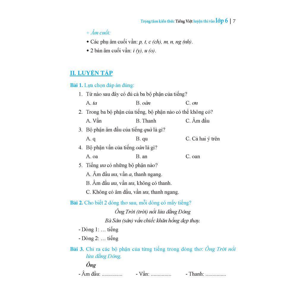 Trọng tâm kiến thức tiếng Việt luyện thi vào lớp 6