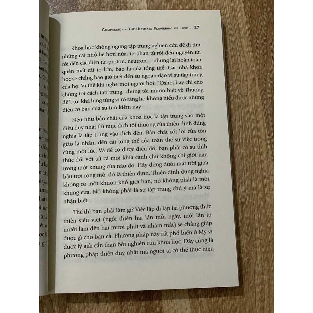 Vậy, làm thế nào để có được sự từ bi? Trong cuốn sách này, Osho nhấn mạnh vai trò của thiền. Ông viết: “Nếu không có thiền, nguồn năng lượng trong bạn chỉ tồn tại dưới dạng thức đam mê; nhưng nếu có thiền, nó sẽ chuyển hóa thành lòng từ bi”. Ông cho rằng con người không thể luyện tập để trở nên từ bi, “nếu thiền là một bông hoa, thì từ bi chính là hương thơm”.