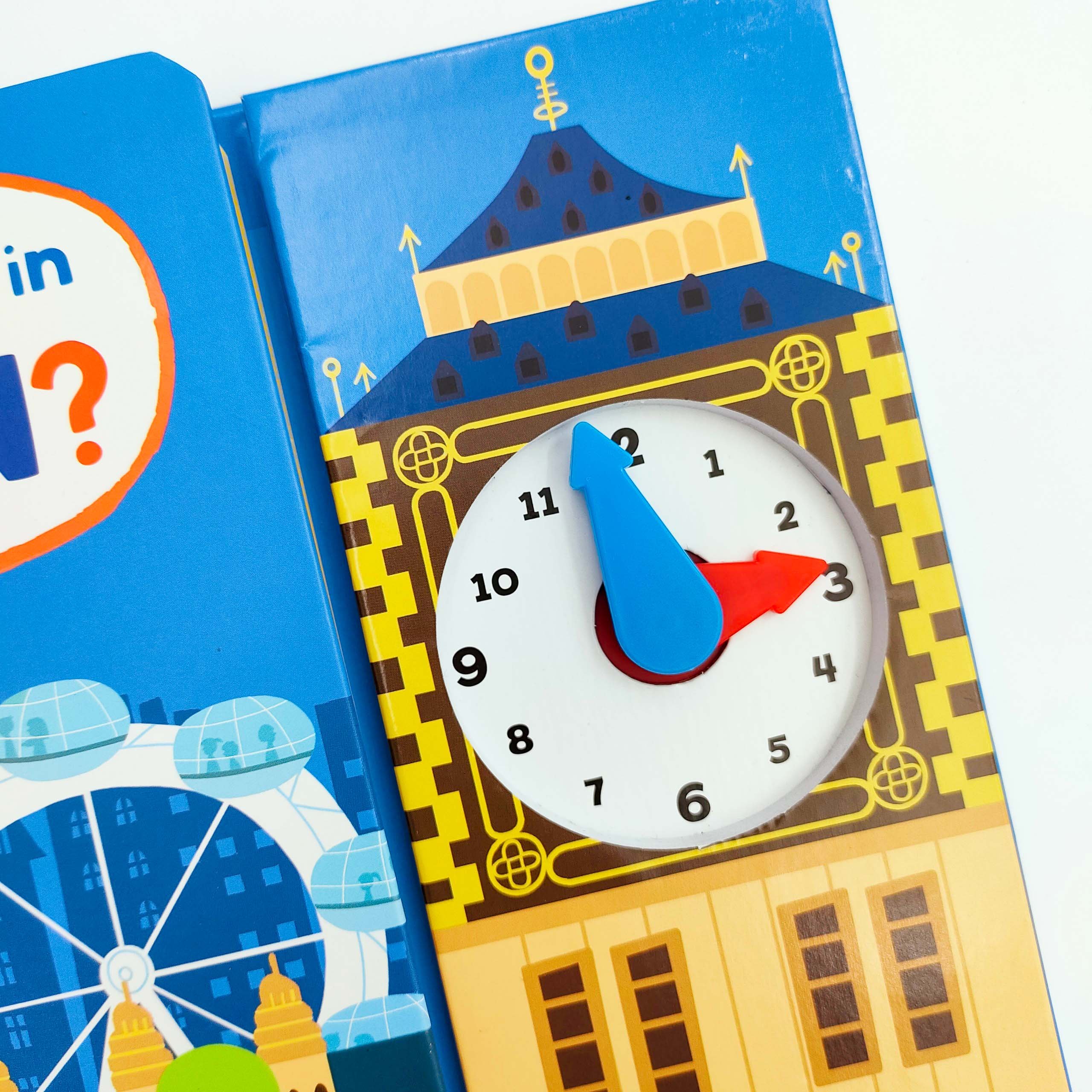 What's the Time in London? Find out in this adorable clock book, perfect for little ones who are starting to learn about time and how it relates to their day.
