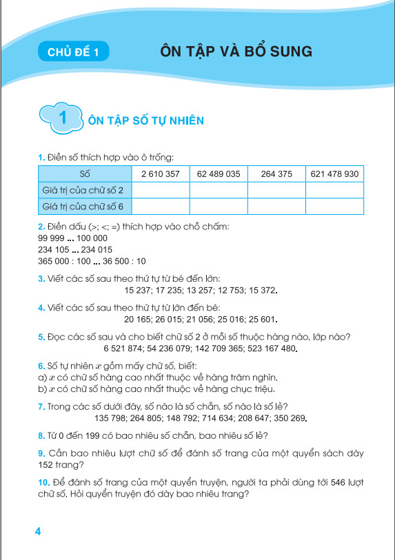– Phần 1: Bài tập: Phần này bao gồm các bài tập được biên soạn bám sát theo các nội dung trong Chương trình Toán lớp 5 (Chương trình giáo dục phổ thông mới).