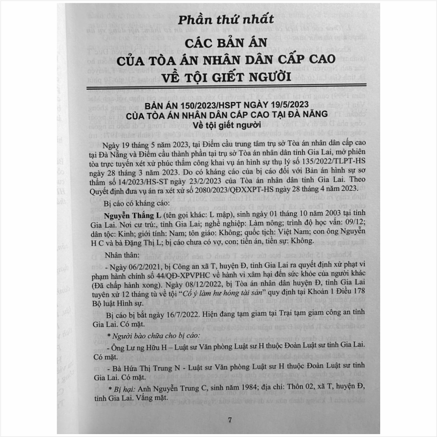 Phần thứ nhất. Các Bản án của Tòa án nhân dân cấp cao về tội giết người