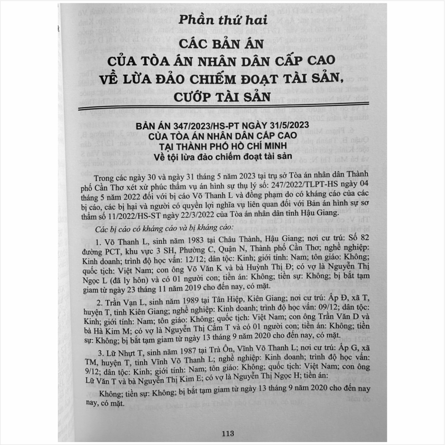 Phần thứ hai. Các Bản án của Tòa án nhân dân cấp cao về lừa đảo chiếm đoạt tài sản, cướp tài sản