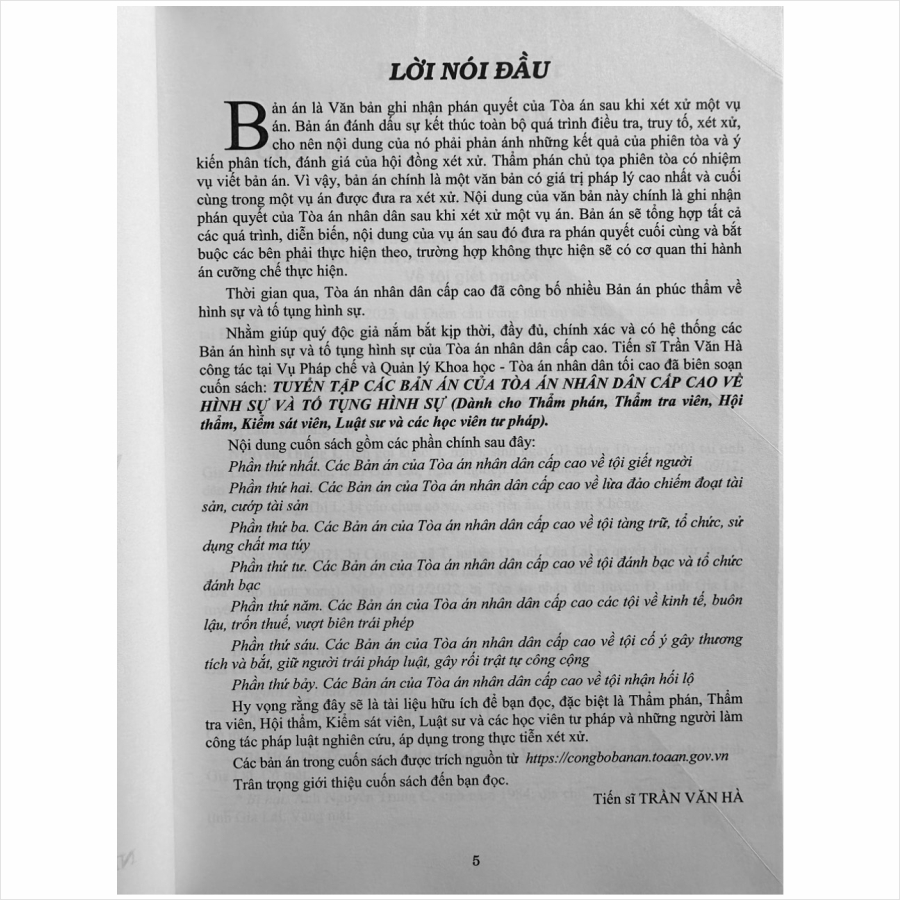 Sách Tuyển Tập Các Bản Án Của Tòa Án Nhân Dân Cấp Cao về Hình Sự và Tố Tụng Hình Sự (dành cho Thẩm phán, Thẩm tra viên, Hội thẩm, Kiểm sát viên, Luật sư và các học viên tư pháp) - TS. Trần Văn Hà