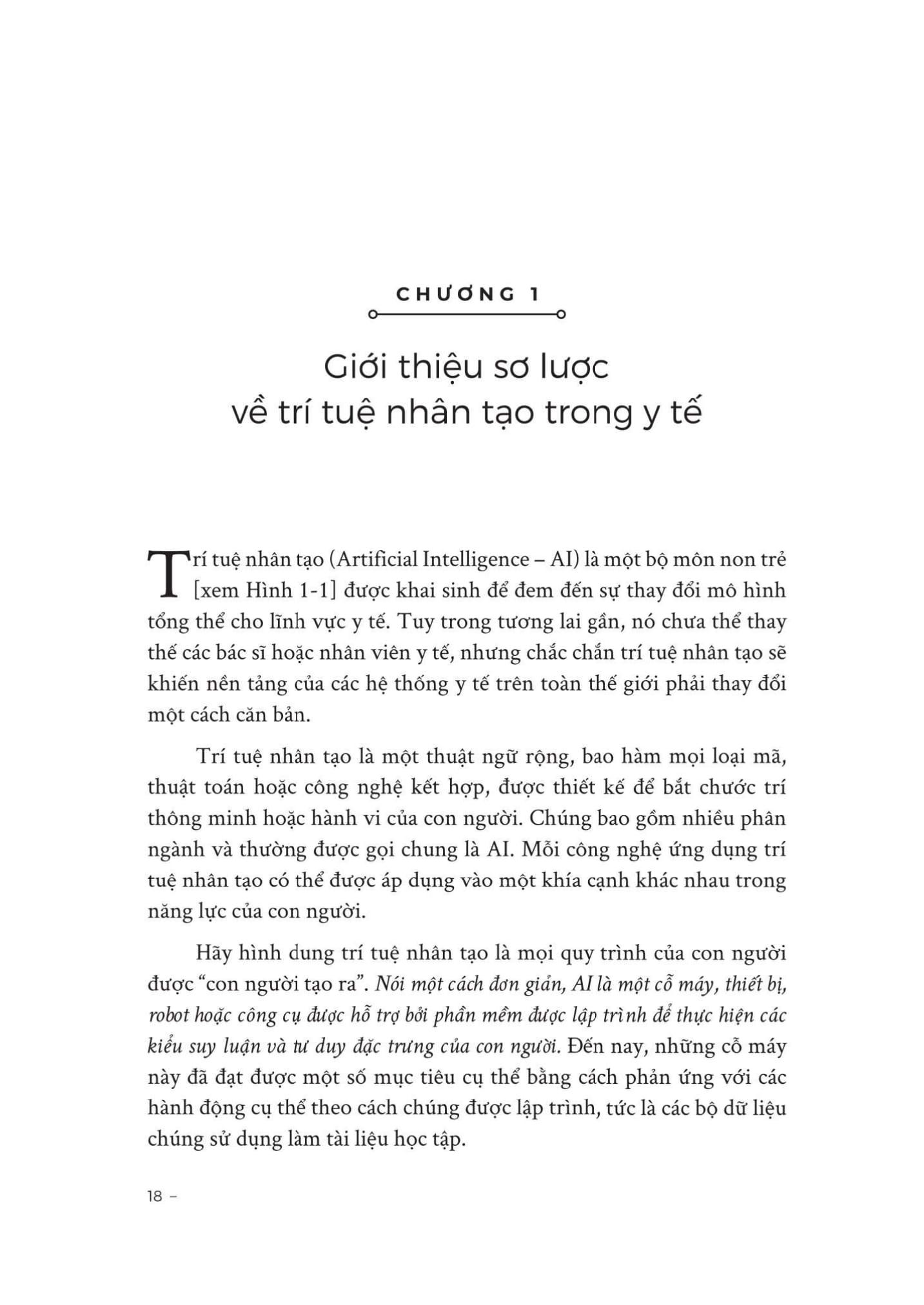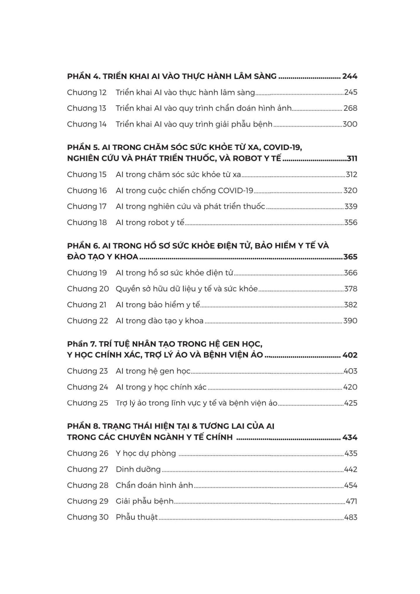 Cuốn sách được chia thành nhiều chương, mỗi chương tập trung vào một khía cạnh cụ thể của AI trong y tế: