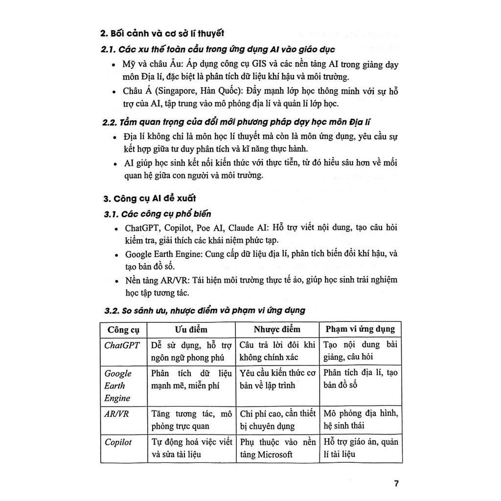 ✨Sách - Ứng Dụng Trí Tuệ AI Trong Dạy Và Học Môn Địa Lí (Dành Giáo Viên Và Học Sinh - Dùng Cho Các Bộ SGK Hiện Hành) - HA