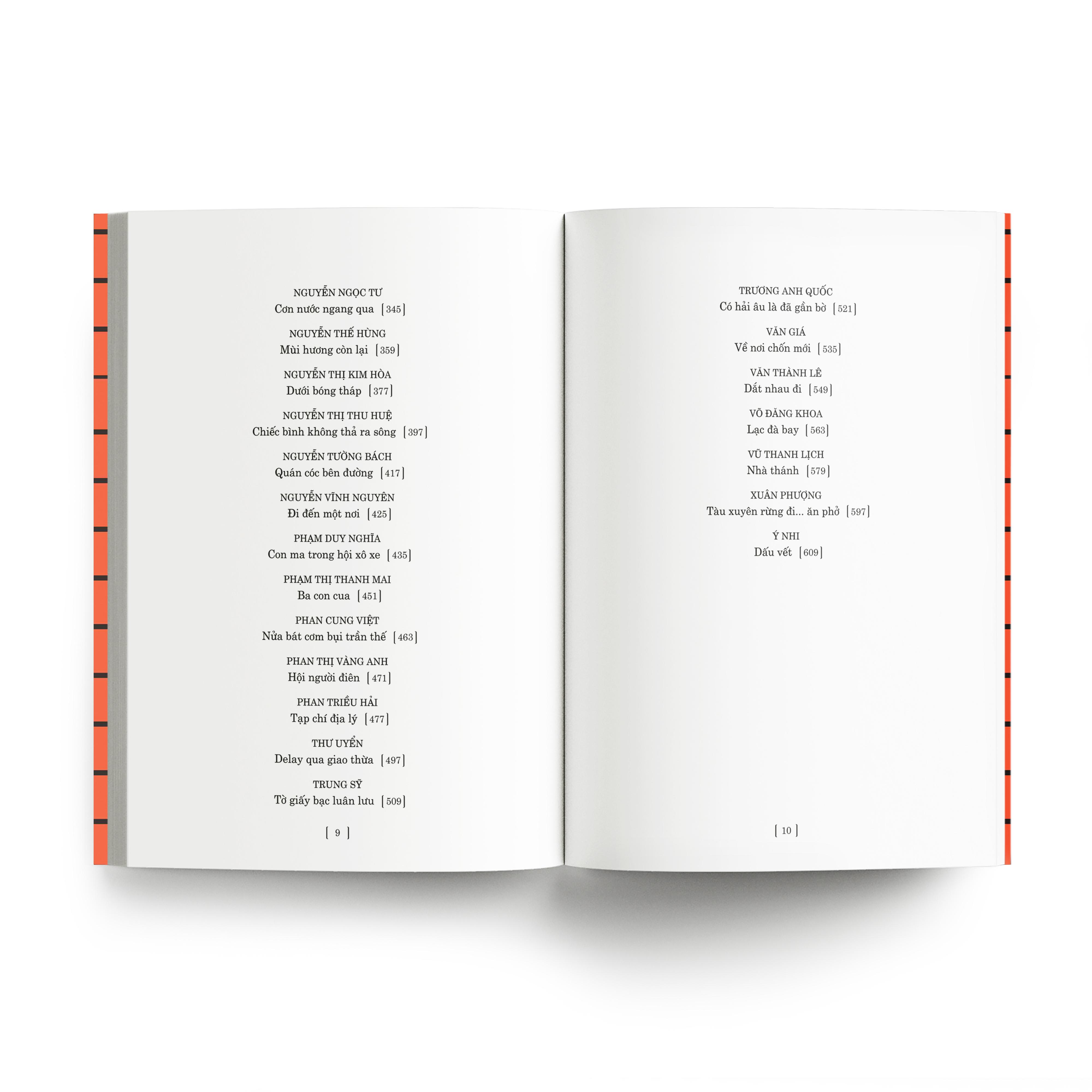Cuốn sách gồm 41 truyện ngắn đặc sắc của các tác giả – bao gồm những tác giả mới và tác giả đang được mến mộ. Tuyển tập quy tụ những nhà văn tiêu biểu của các miền đất nước; các nhà văn trong mọi ngành, mọi giới; nhà văn thuộc nhiều thế hệ, từ độ tuổi hai mươi cho đến cao niên ngót một thế kỷ; có nhà văn trong nước và nhà văn đang sống ở nước ngoài. Độc giả sẽ được gặp lại những nhà văn được yêu mến từ lâu như Ma Văn Kháng, Bảo Ninh, Hồ Anh Thái, Lê Minh Khuê, Nguyễn Thị Thu Huệ… và được gặp gỡ những gương mặt mới như Võ Đăng Khoa, Hiền Trang, Huỳnh Trọng Khang…