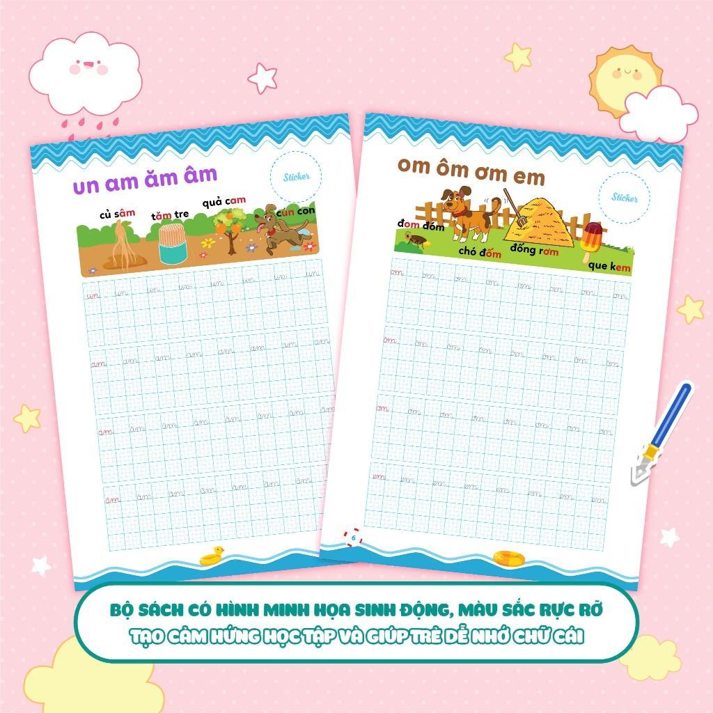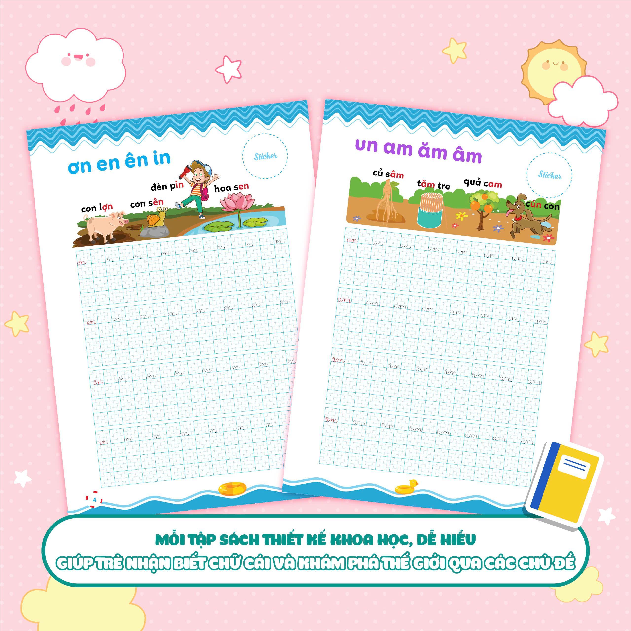 Với sự kết hợp giữa hình ảnh minh họa và thiết kế hấp dẫn, bộ sách tạo một môi trường học tập trực quan và kích thích sự sáng tạo của trẻ. Trẻ sẽ được hòa mình vào các trang sách rực rỡ màu sắc và cảm nhận niềm vui khi học viết chữ mới.