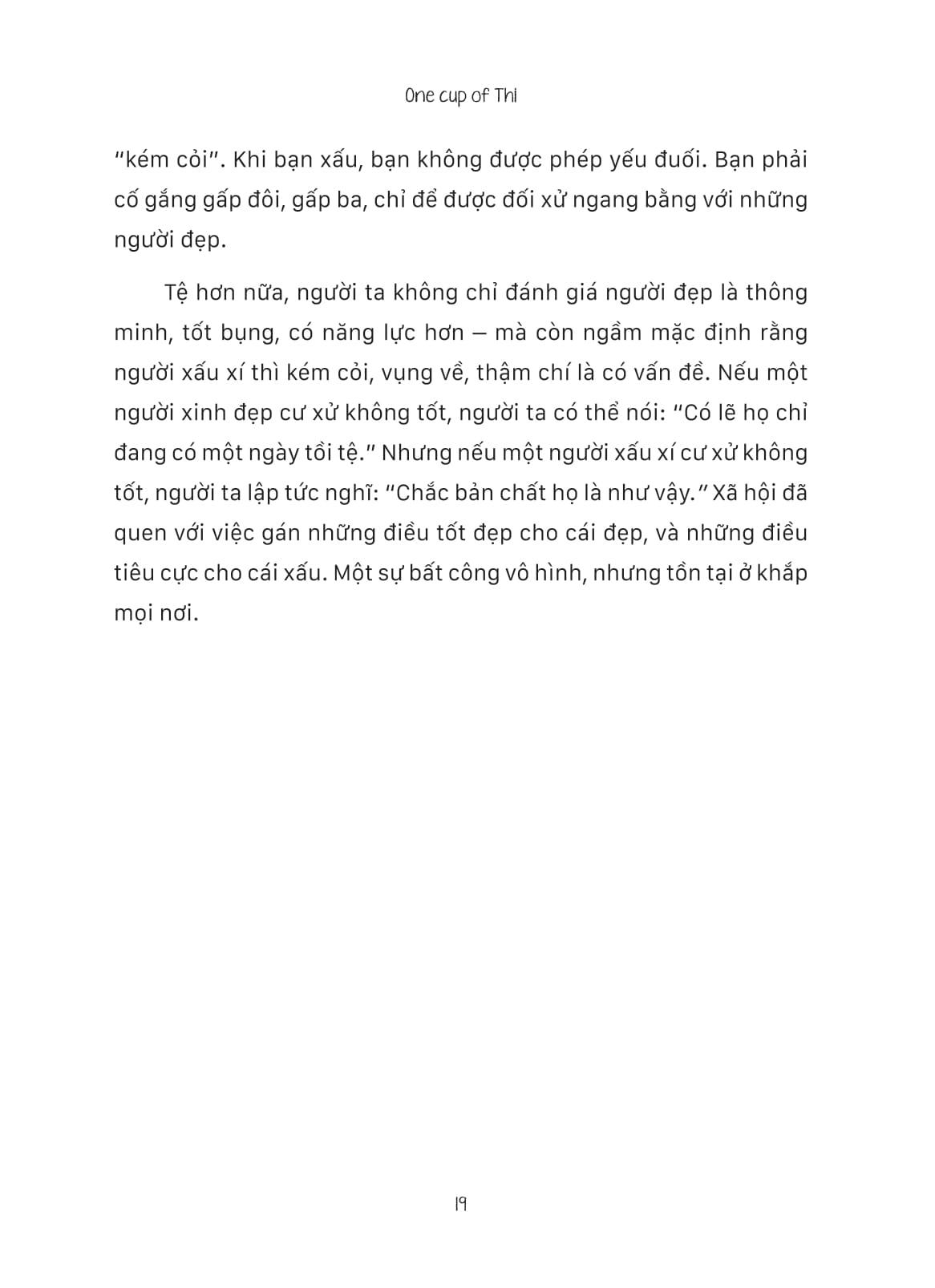 One cup of Thi (Minh Thi) là người sản xuất nội dung, chủ nhân kênh podcast và page One cup of Thi, đăng tải những nội dung xoay quanh việc thực hành quan sát và suy tưởng về cuộc sống, hành trình trưởng thành. Tự nhận m.ình là một người kỳ cục, đi chậm và cô độc, Thi tin rằng nghệ thuật và con chữ có thể trở thành nơi trú ẩn để chúng ta được tự do thể hiện và lắng nghe chính m.ình nhiều hơn.