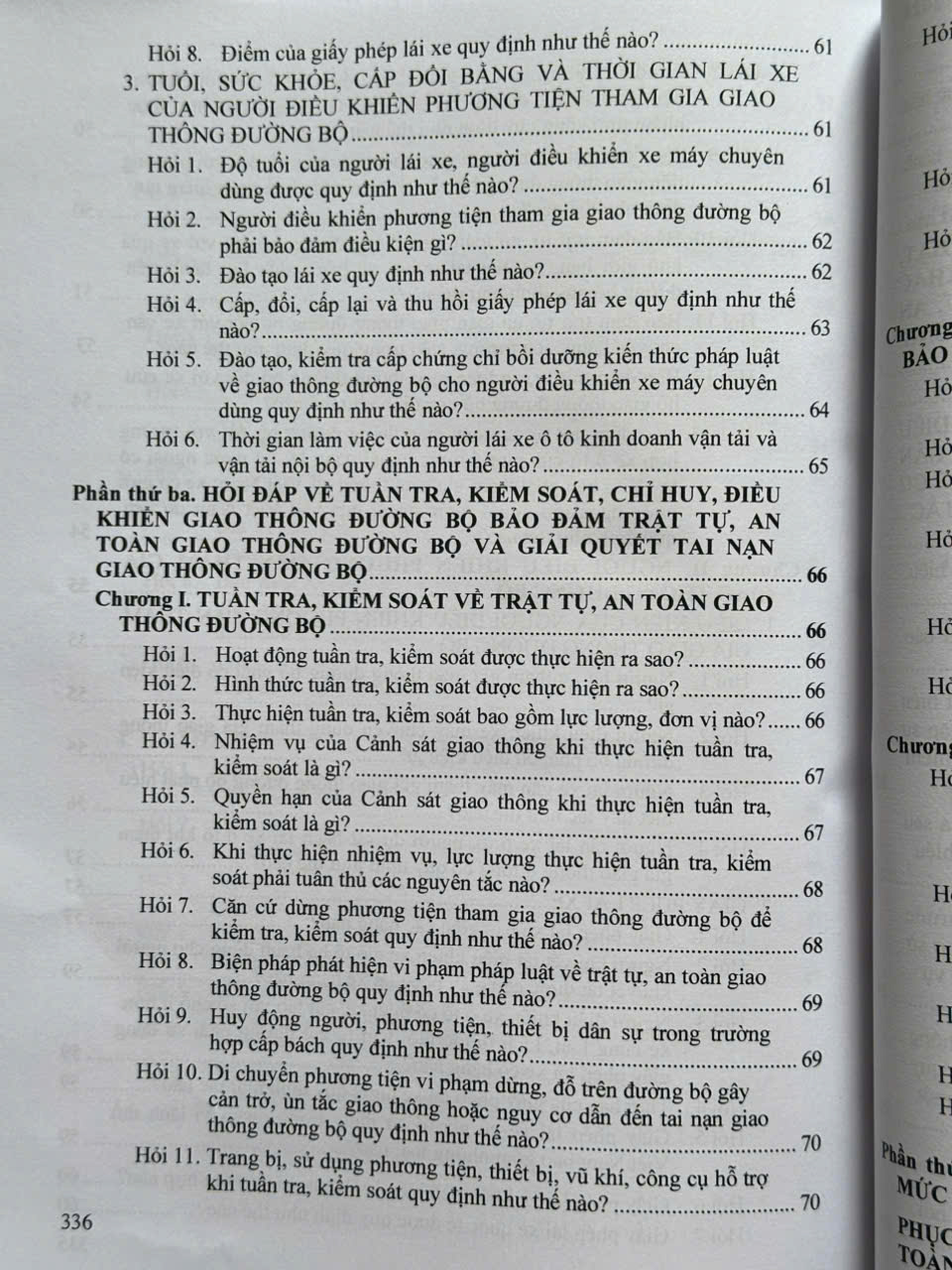 Phần thứ ba. HỎI ĐÁP VỀ TUẦN TRA, KIỂM SOÁT, CHỈ HUY, ĐIỀU KHIẾN GIAO THÔNG ĐƯỜNG BỘ BẢO ĐẢM TRẬT TỰ, AN TOÀN GIAO THÔNG ĐƯỜNG BỘ VÀ GIẢI QUYẾT TAI NẠN GIAO THÔNG ĐƯỜNG BỘ.