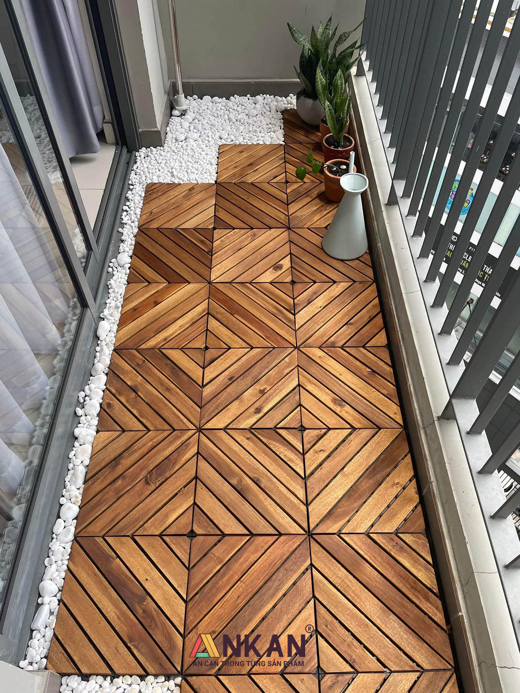 Vỉ Gỗ Lót Sàn Ban Công Thương Hiệu ANKAN Gu Màu Đen 12 Nan là một trong những sản phẩm lót sàn ban công phổ biến hiện nay. Khu vực thường sử dụng sản phẩm
