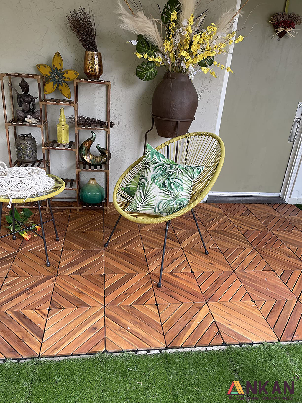Vỉ gỗ 8 nan của ANKAN có thể kết nối trực tiếp với vỉ cỏ nhân tạo mà ANKAN đang kinh doanh.