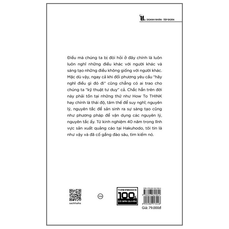 Điều mà chúng ta bị đòi hỏi ở đây chính là luôn luôn nghĩ những điều khác với người khác và sáng tạo những điều không giống với người khác. Mặc dù vậy, ngay cả khi đối phương yêu cầu “hãy nghĩ điều gì đó đi” cũng chẳng có ai trao cho chúng ta “kỹ thuật tư duy” cả. Chắc hẳn trên đời này phải tồn tại những thứ như How to THINK hay chính là thái độ, tâm thế để suy nghĩ; nguyên lí, nguyên tắc để sản sinh ra sự sáng tạo cũng như phương pháp để vận dụng các nguyên lý, nguyên tắc ấy. Từ kinh nghiệm 40 năm trong lĩnh vực sản xuất quảng cáo tại Hakuhodo, Takahashi Nobuyuki đã cố gắng đào sâu, tìm kiếm nó.