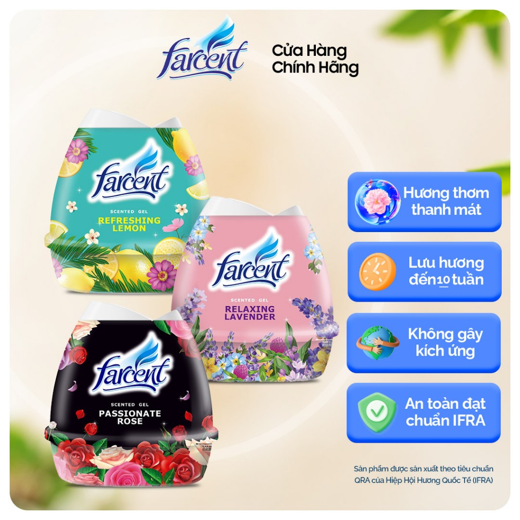 Mua tại TiktokSáp thơm phòng, khử mùi Farcent hương hoa hồng, hoa oải hương, hương chanh 200g hàng chính hãng