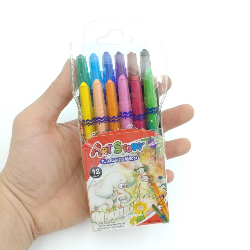 - Mỗi cây màu có kích thước vừa với tay của bé, giúp bé cầm nắm và tô màu dễ dàng hơn. - Bút sáp vặn được thiết kế rất tiện ích với dạng sáp